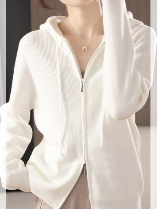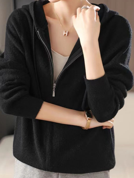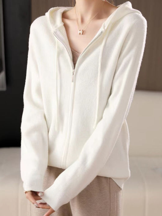 Drawstring Zip Up Long Sleeve Hooded Sweater