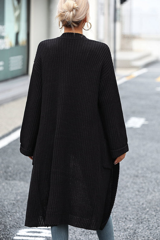 Dropped Shoulder Long Sleeve Cardigan with Pocket