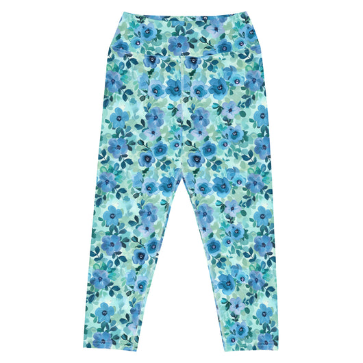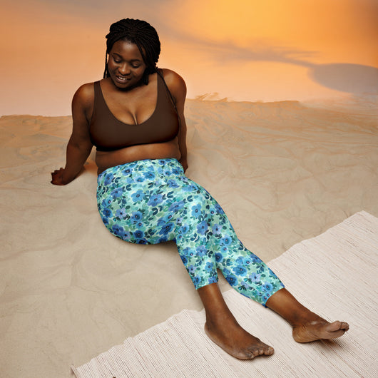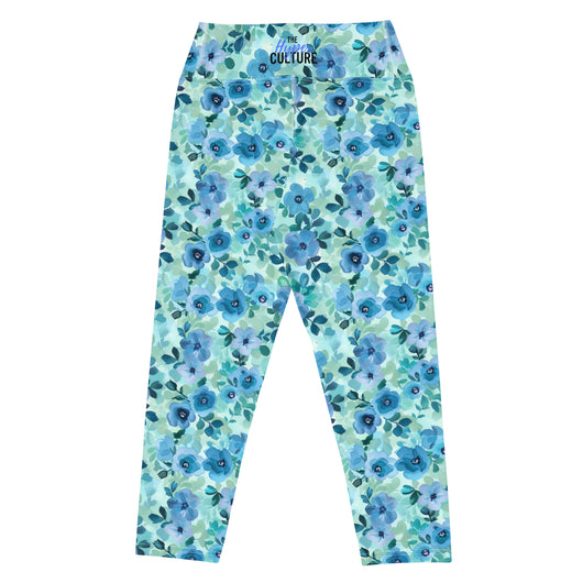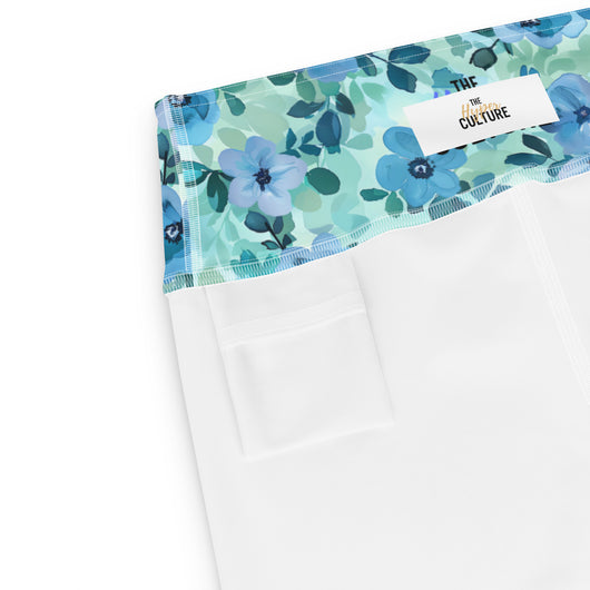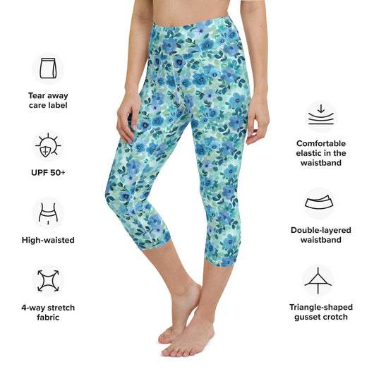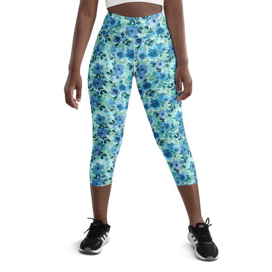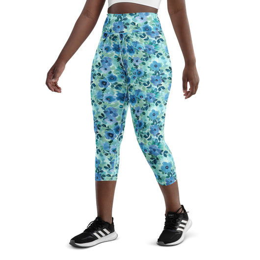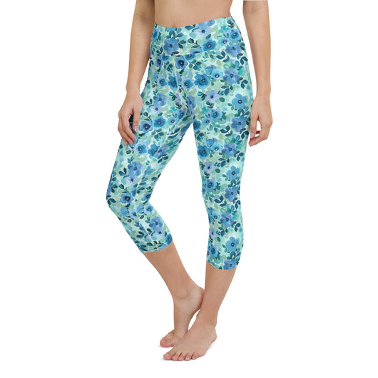 [Floral Bloom] Azure Meadow Yoga Capri Leggings