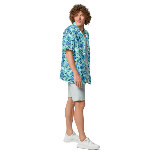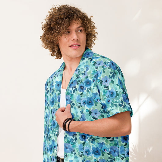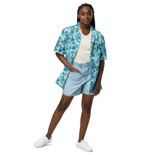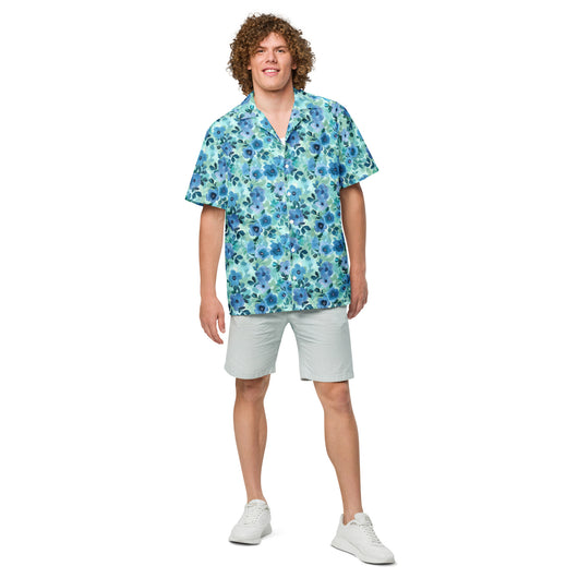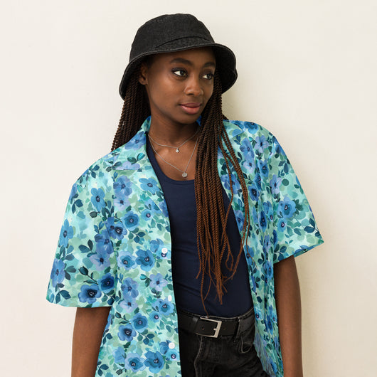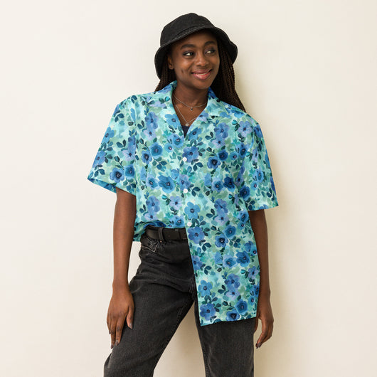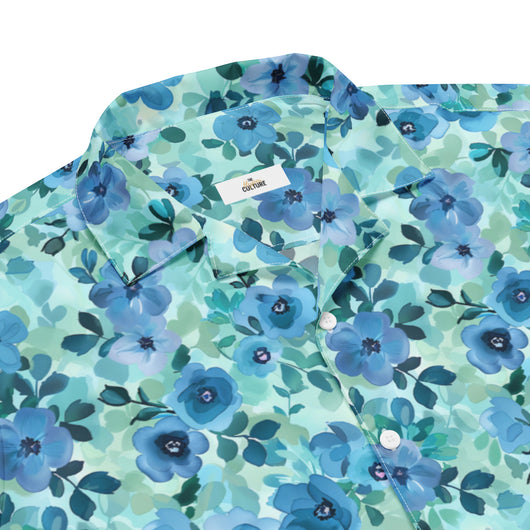 [Floral Bloom] Azure Meadow Unisex Button Shirt