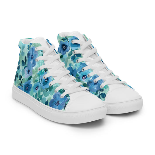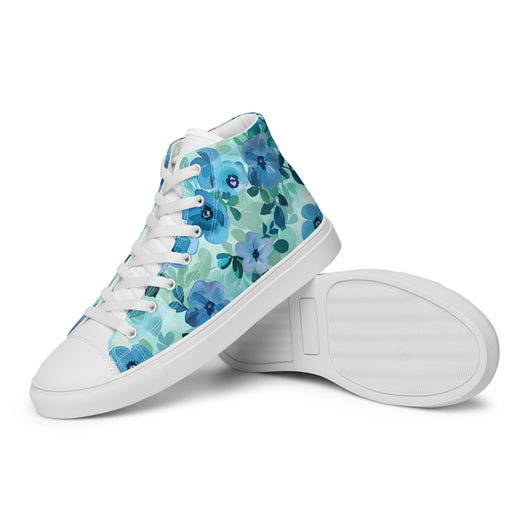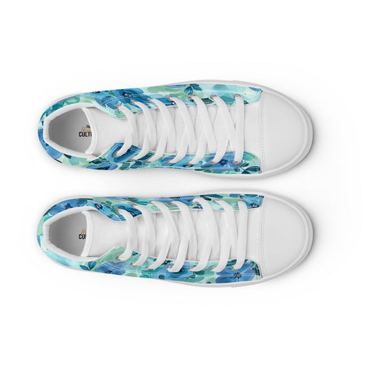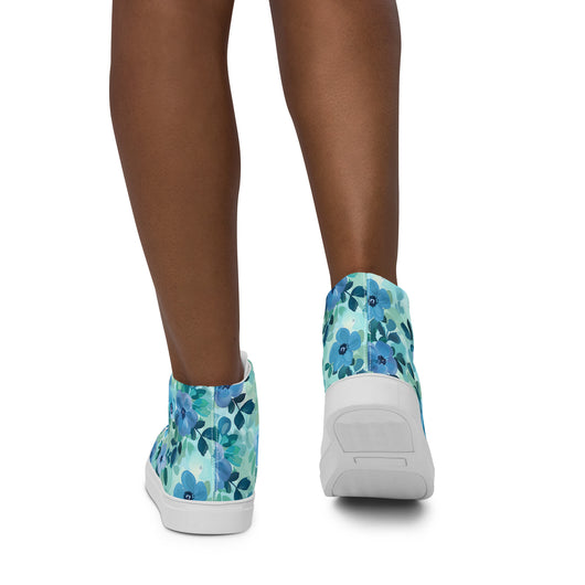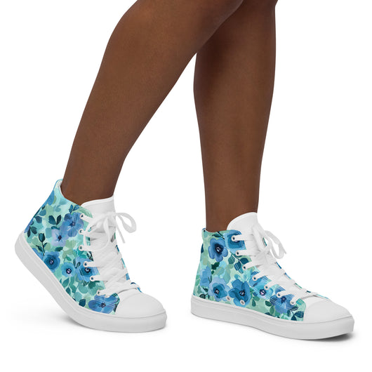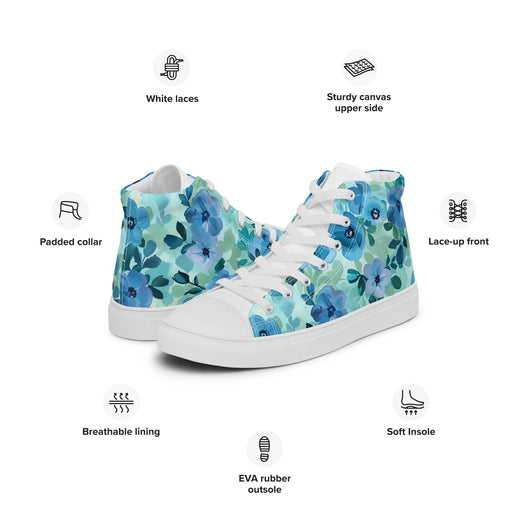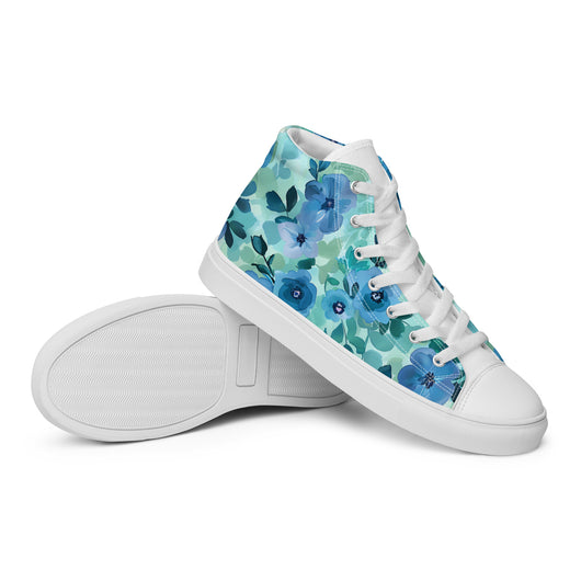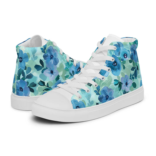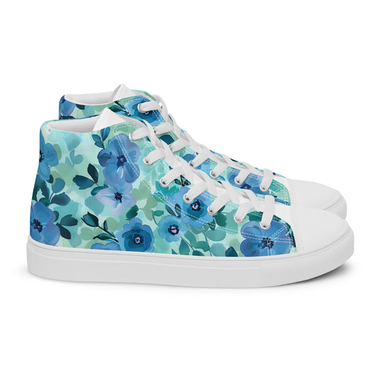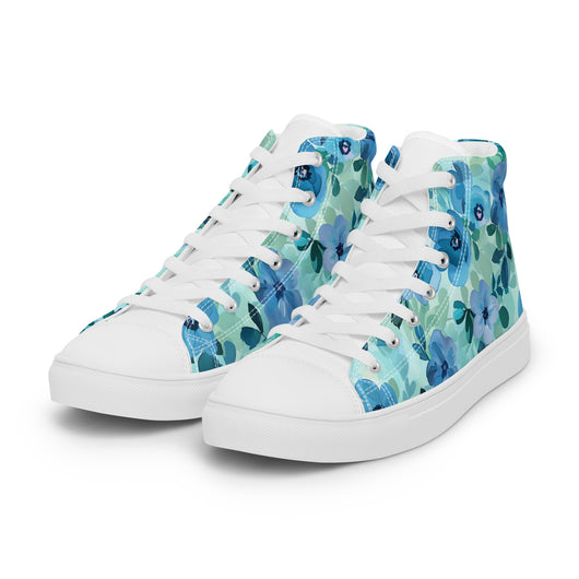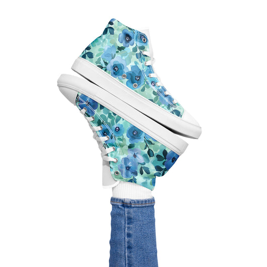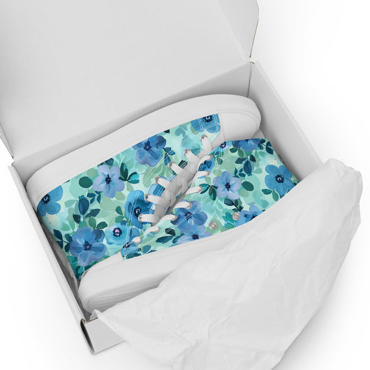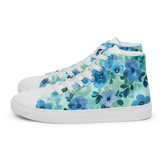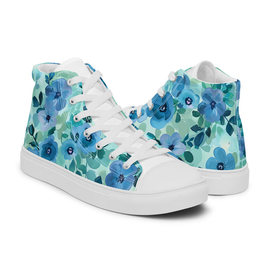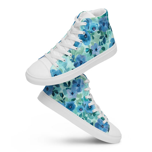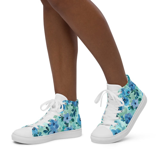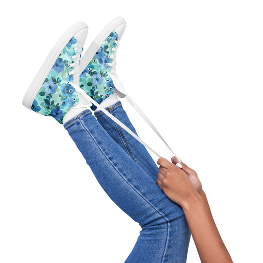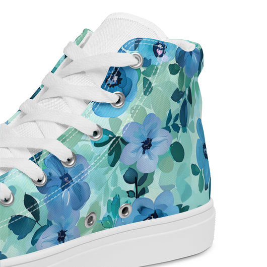 [Floral Bloom] Azure Meadow Women’s High Top Canvas Shoes