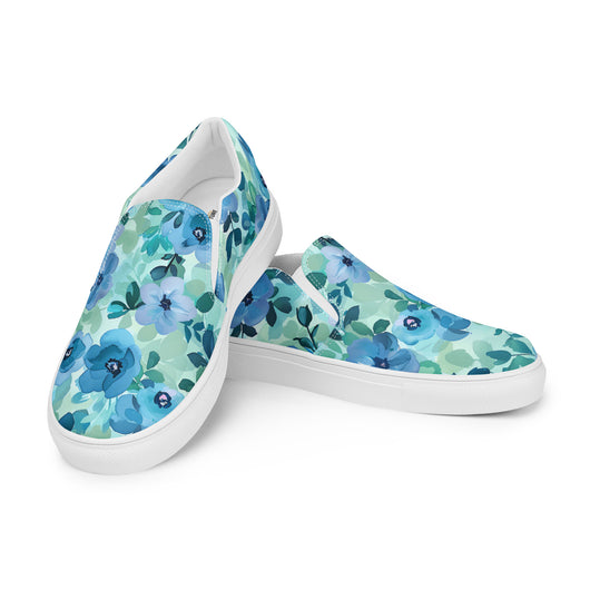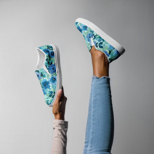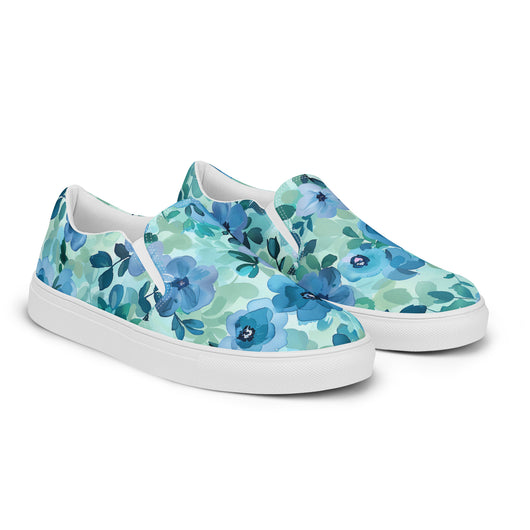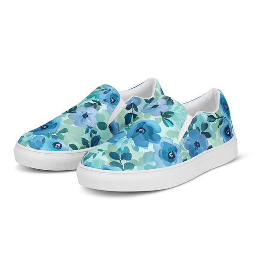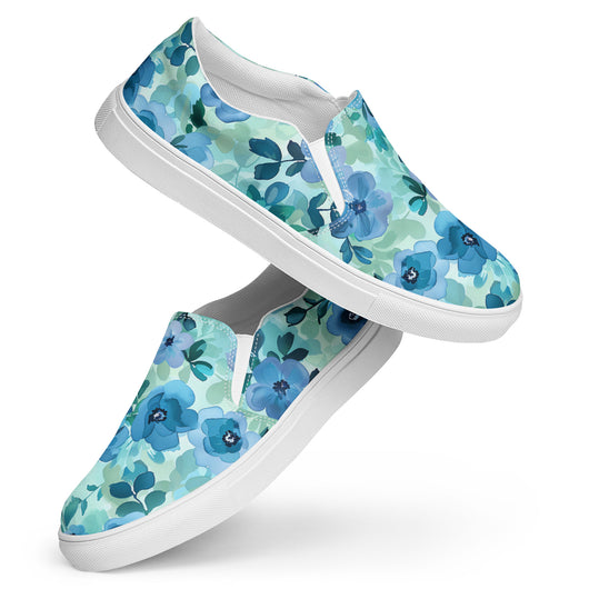 [Floral Bloom] Azure Meadow Women’s Slip-on Canvas Shoes