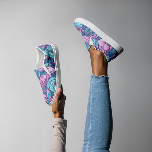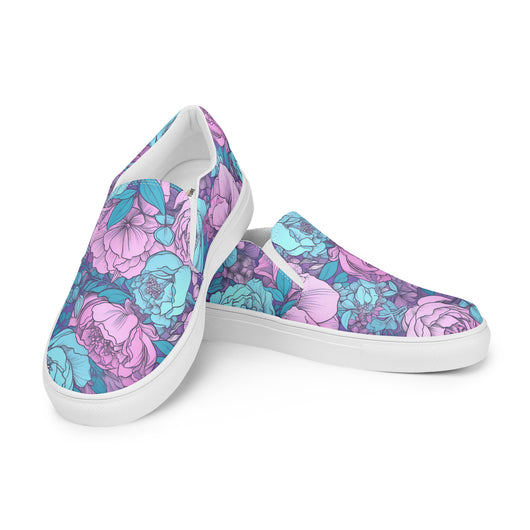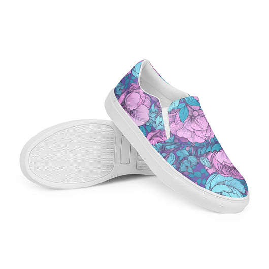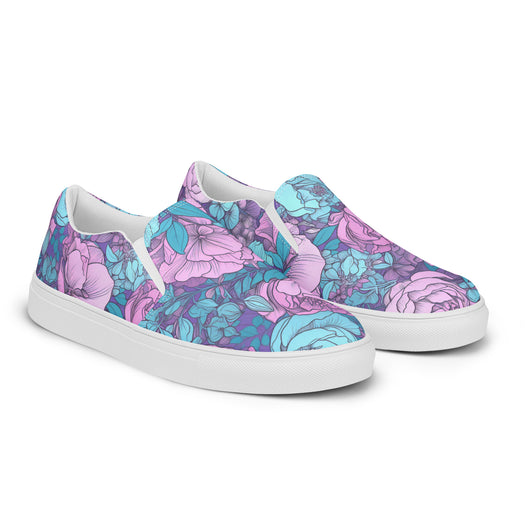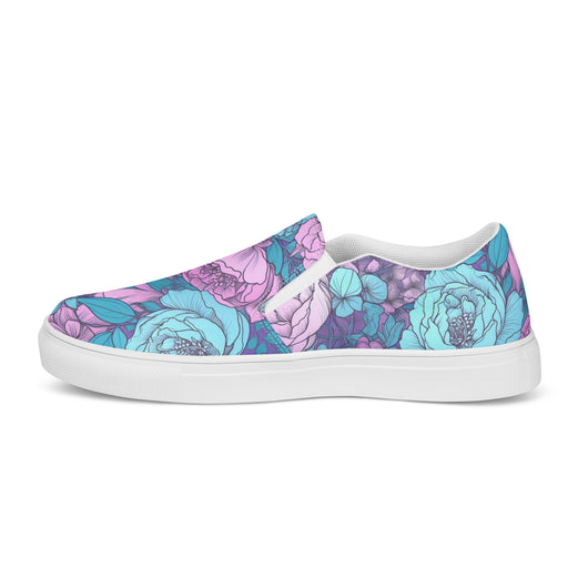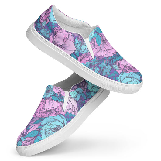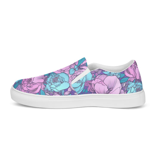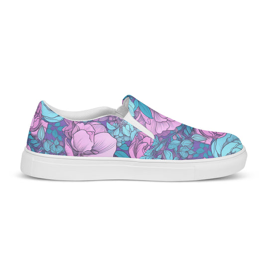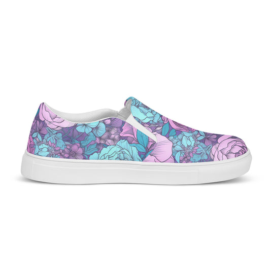 US Size 5-11.5 | Elevate your summer look with these rich purple canvas slip-ons, featuring a gorgeous pastel purple, blue and pink floral print. Stylish and comfy, they offer soft, removable insoles and durable rubber outsoles for great traction. Slip them on and step out in style!