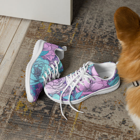 US Sizes 5-12 | Boost your mood all day with these comfy, lightweight kicks! Featuring a gorgeous pastel purple, blue and pink floral print, breathable lining, a padded collar, and rubber outsole, they’re your new go-to shoes.