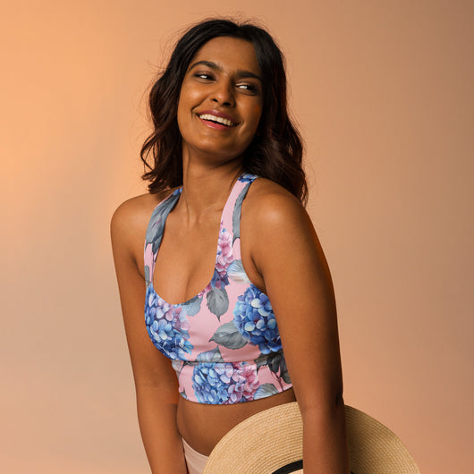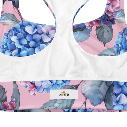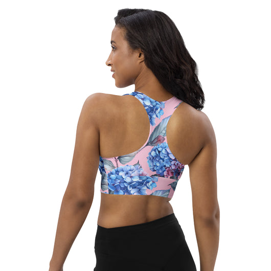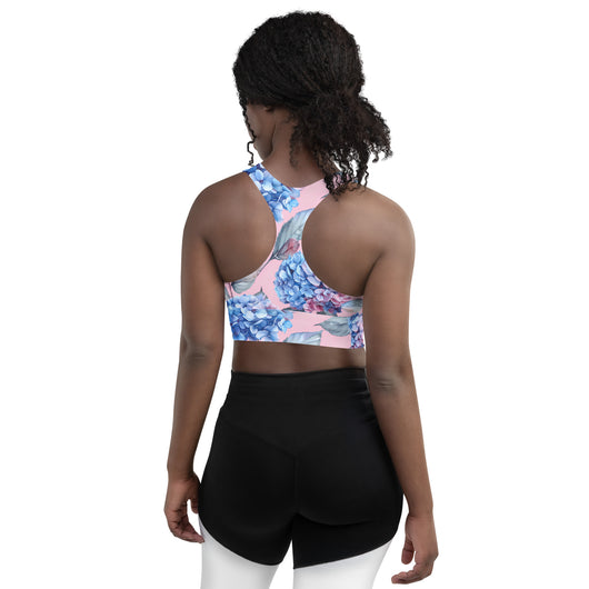 [Floral Bloom] Blushing Hydrangea Longline Sports Bra