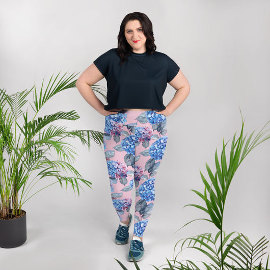 [Floral Bloom] Blushing Hydrangea Plus Size Leggings