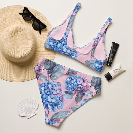 [Floral Bloom] Blushing Hydrangea Recycled High-Waisted Bikini