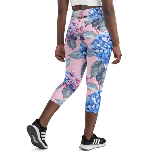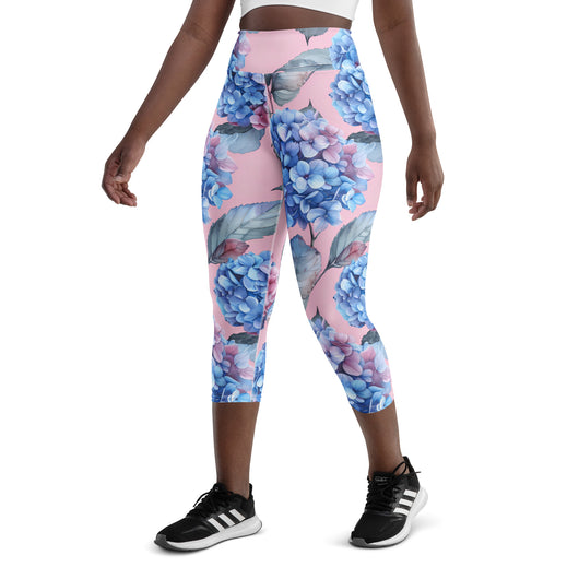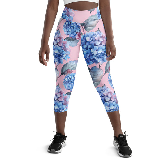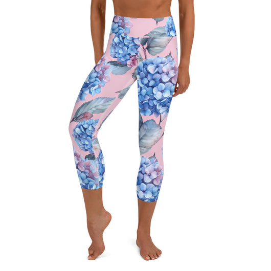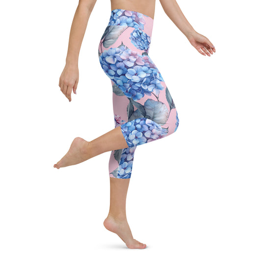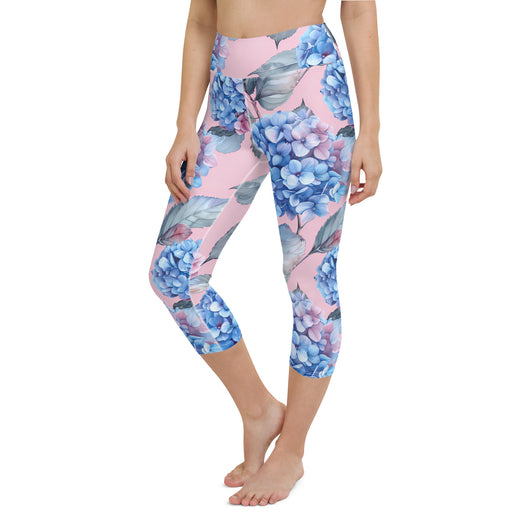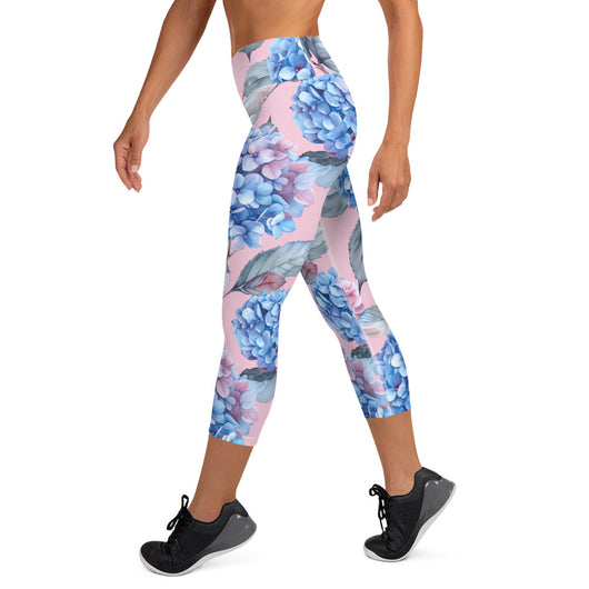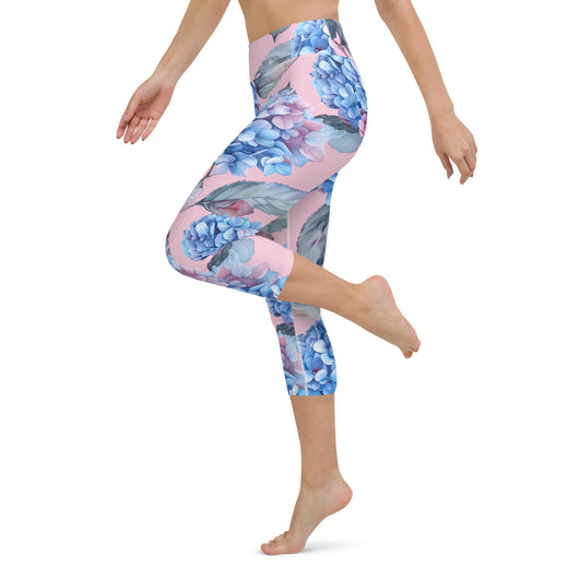 [Floral Bloom] Blushing Hydrangea Yoga Capri Leggings