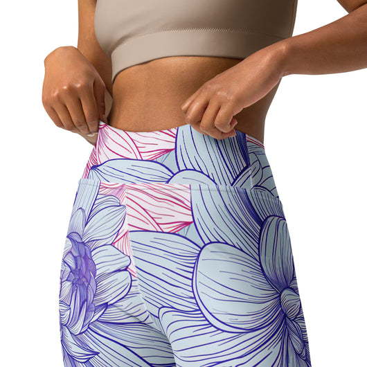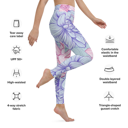 Searching for the ultimate blend of comfort and flexibility for your yoga practice? Look no further! These yoga leggings, featuring a gorgeous dahlia floral print on grey background, are incredibly soft, stretchy, and ridiculously comfortable. Order these printed yoga pants now and elevate your next yoga session to a whole new level of style and ease.