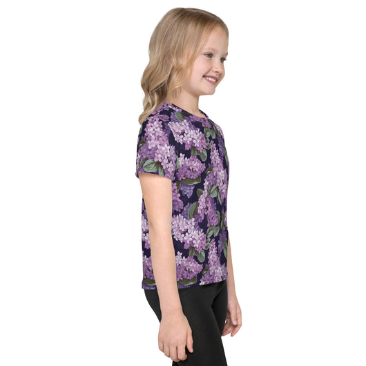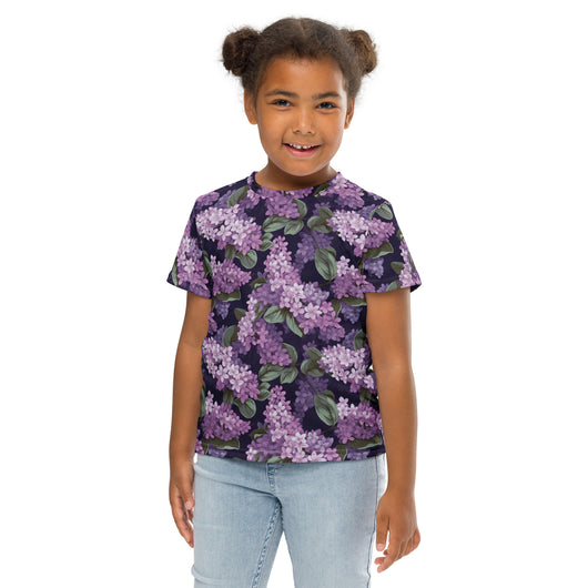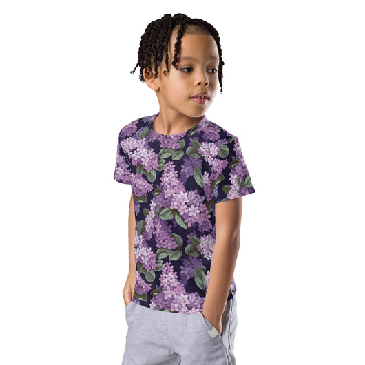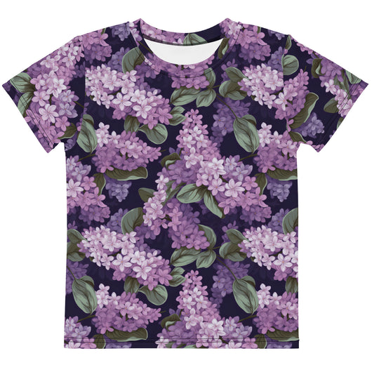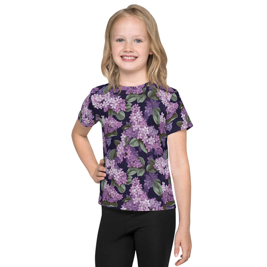 Sizes 2T - 7 | Get your kids ready for back to school with the ultimate kid's crew neck shirt. Featuring a beautiful purple lavender print, this stylish and comfortable tee is perfect for all their activities.
