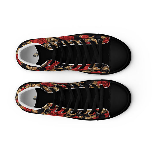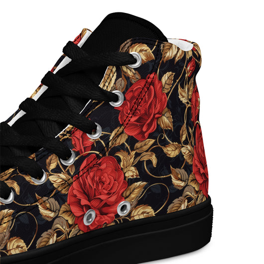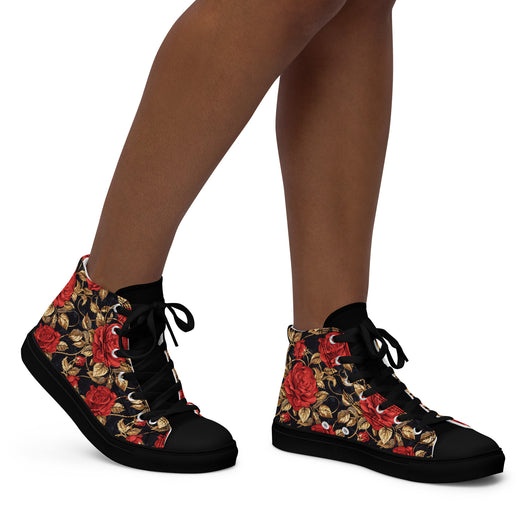 [Floral Bloom] Noir Rose Women’s High Top Canvas Shoes
