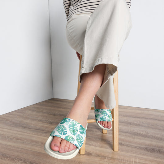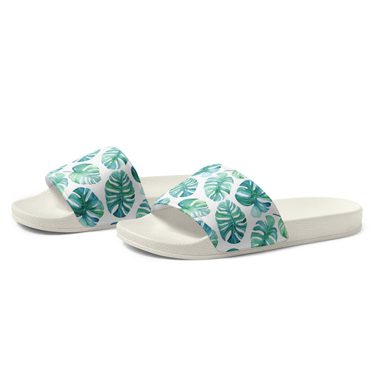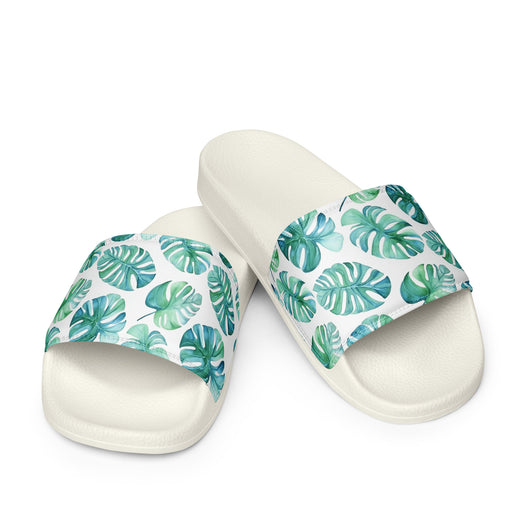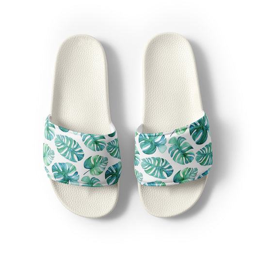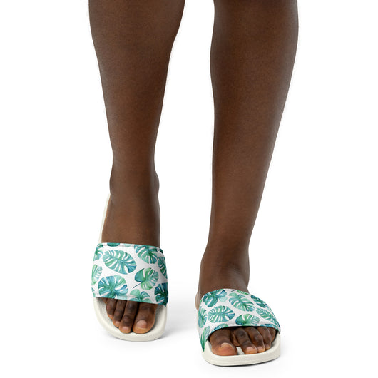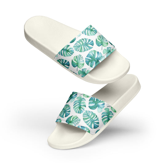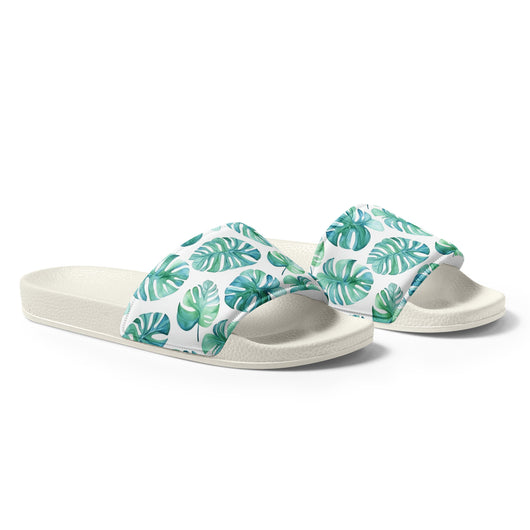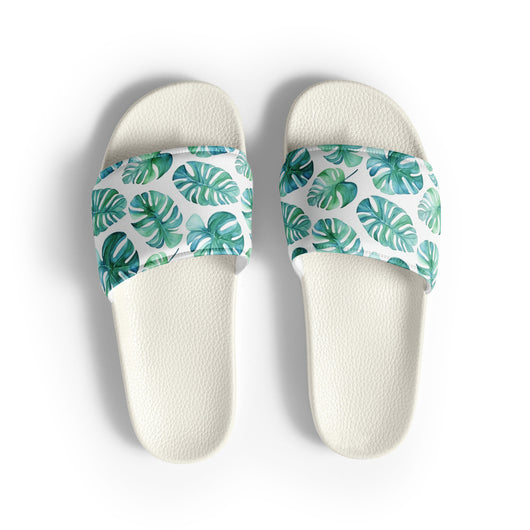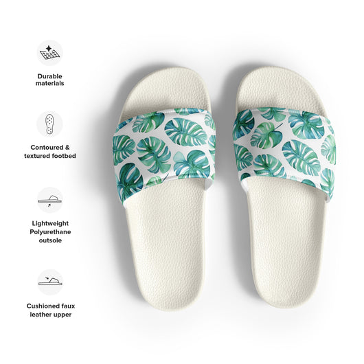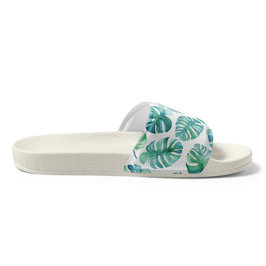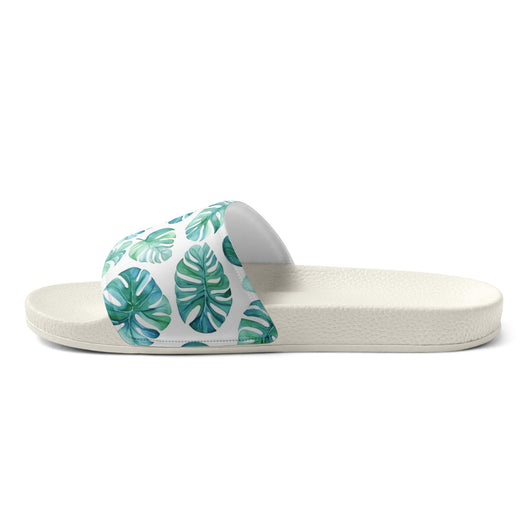 These women’s slides are a summer essential. With a cushioned upper strap and textured footbed, they keep you comfy all day long—whether you’re hitting the beach or chilling by the pool. Featuring gorgeous palm leaves on white background, they’re as stylish as they are comfy.