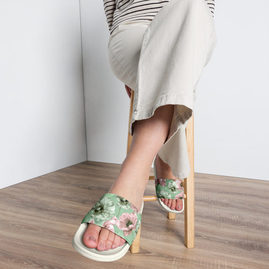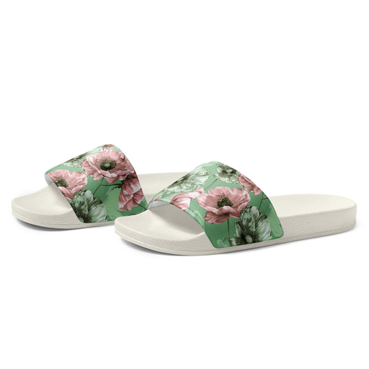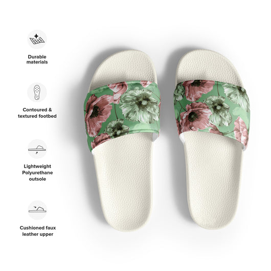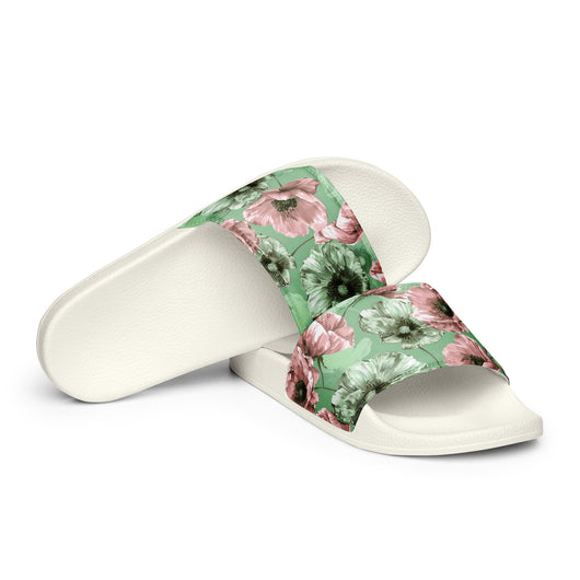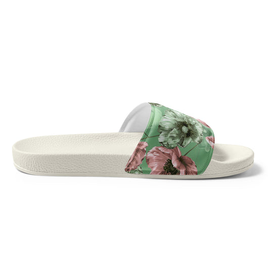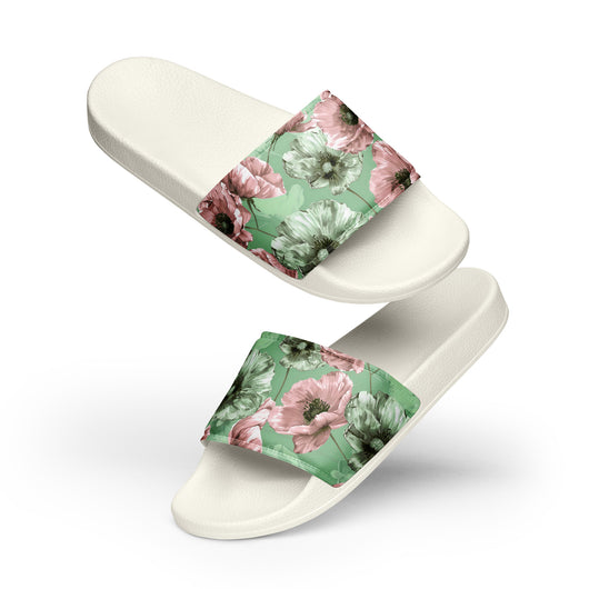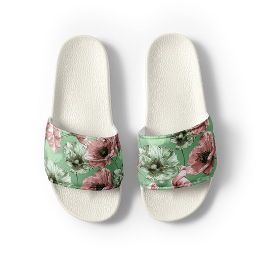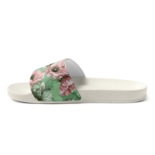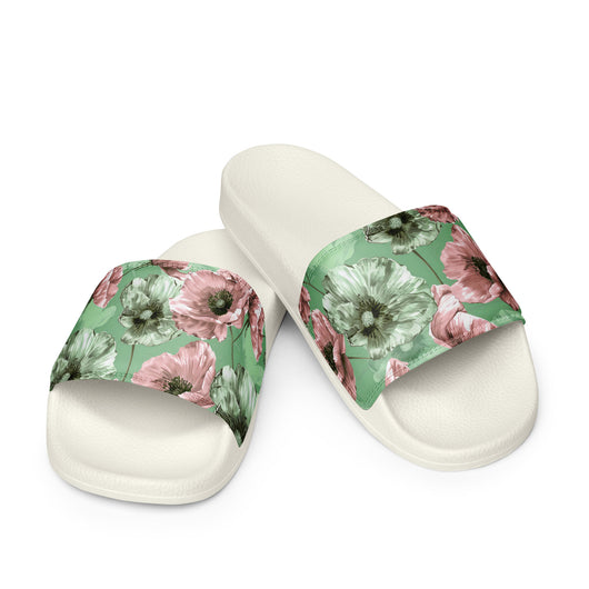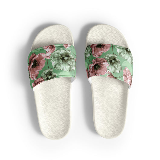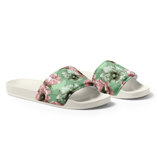 These women’s slides are a summer essential. With a cushioned upper strap and textured footbed, they keep you comfy all day long—whether you’re hitting the beach or chilling by the pool. Featuring gorgeous pale green and pink poppy flowers on a pastel green background, they’re as stylish as they are comfy.