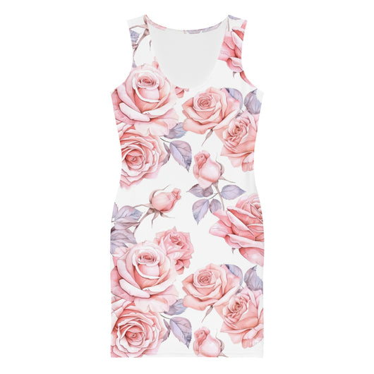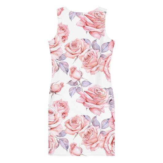 XS - XL | Make a statement and look fabulous in this all-over printed, fitted dress. Featuring a gorgeous rose print on a white background, this dress combines elegance and style for any occasion. Perfect for a chic look, it's available in sizes XS to XL.