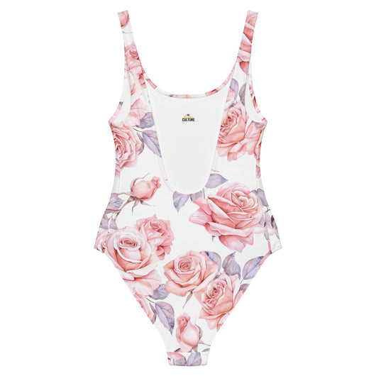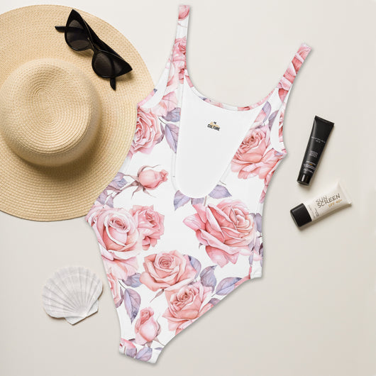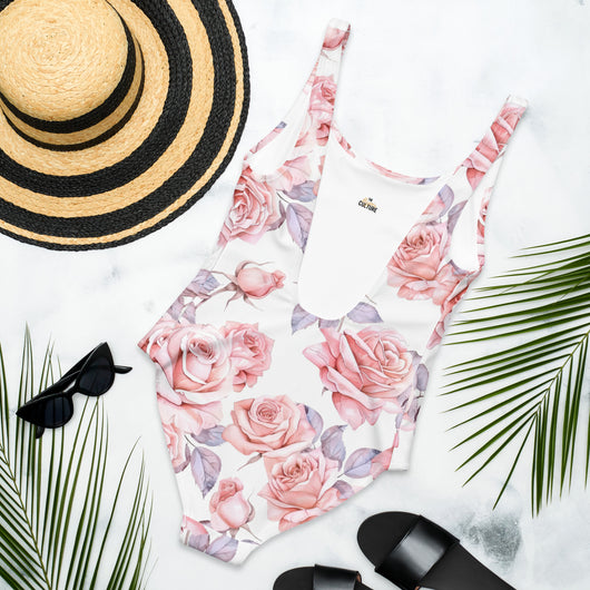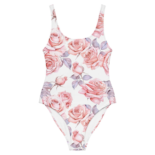 XS - 3XL | Looking for a swimsuit that flatters every body shape? Our one-piece swimsuit with gorgeous roses on a white background is designed to highlight your best features. Made from smooth fabric, it's perfect for the beach or pool.