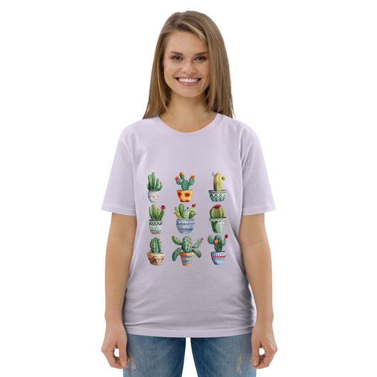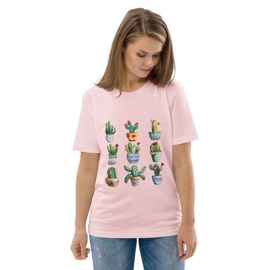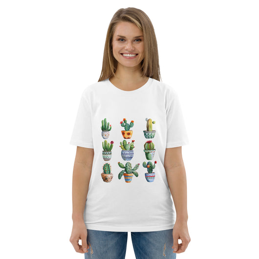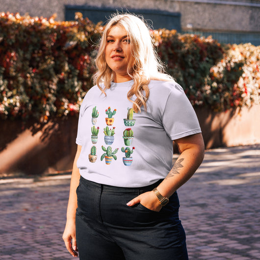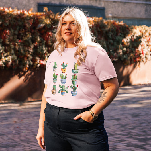 This unisex tee, made from 100% organic ring-spun cotton, is a total must-have. It's high-quality, super comfy, and eco-friendly. Featuring the 9 cute cactus in pots, it’s a standout piece that’s as unique as you.
