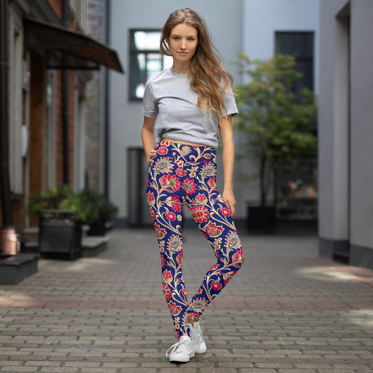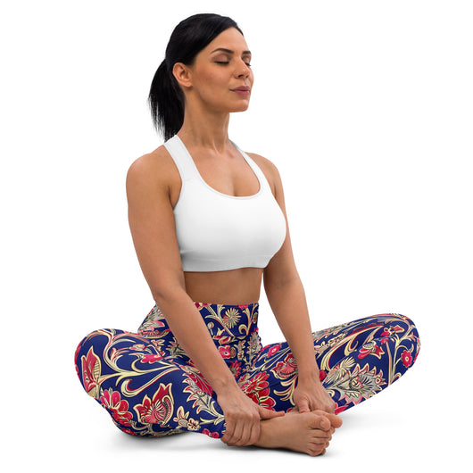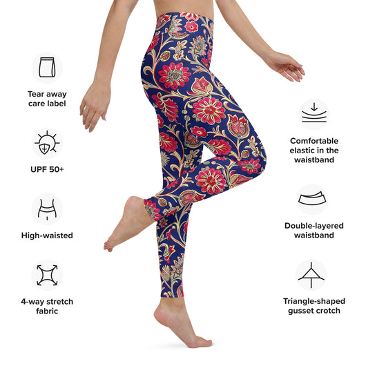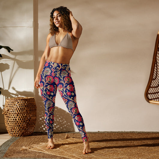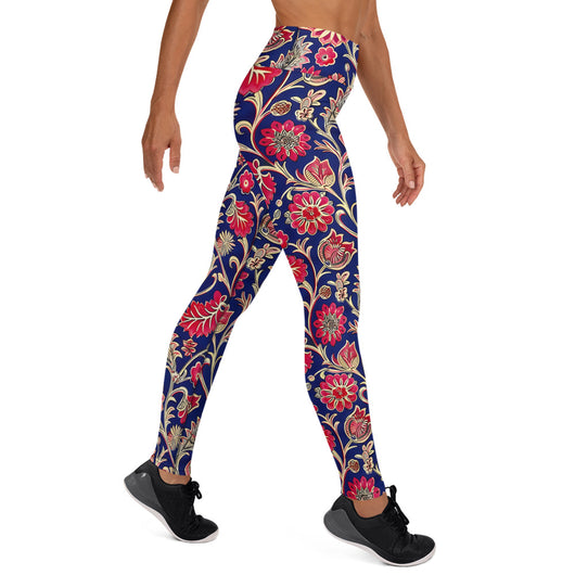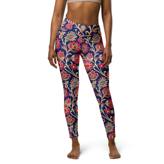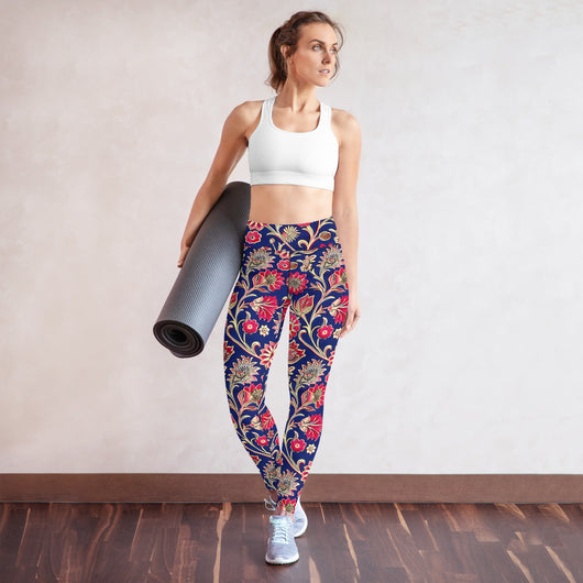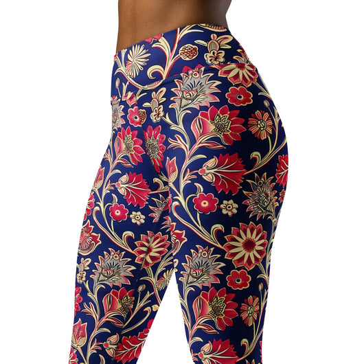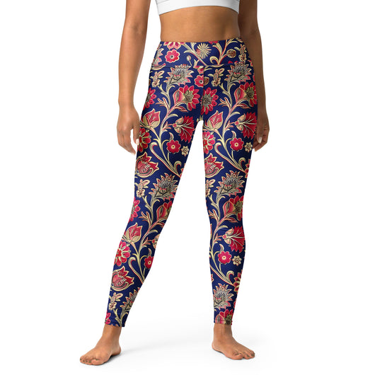 Searching for the ultimate blend of comfort and flexibility for your yoga practice? Look no further! These yoga leggings, featuring a gorgeous red ethnic florals on dark blue background, are incredibly soft, stretchy, and ridiculously comfortable. Order these printed yoga pants now and elevate your next yoga session to a whole new level of style and ease.