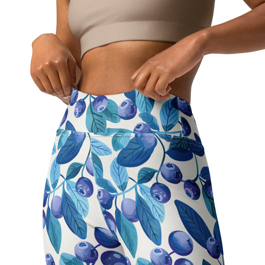 Searching for the ultimate blend of comfort and flexibility for your yoga practice? Look no further! These yoga leggings, featuring a blueberry fruity print on white background, are incredibly soft, stretchy, and ridiculously comfortable. Order these printed yoga pants now and elevate your next yoga session to a whole new level of style and ease.