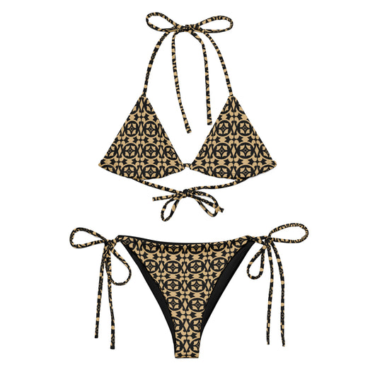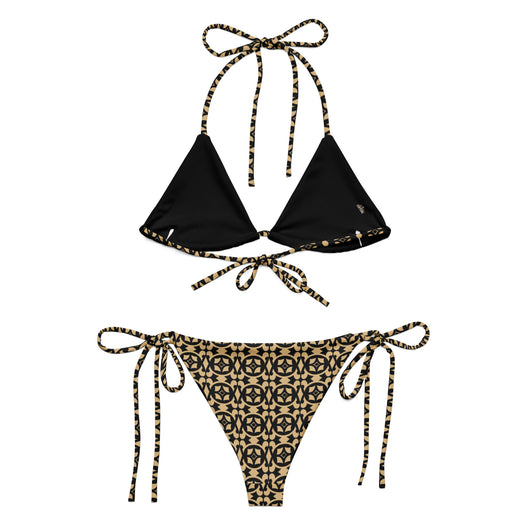 Stay comfortable and stylish all summer with this Mono Gramic Print Recycled String Bikini set, featuring a stunning monogram black print on a beige background. Made from soft recycled polyester with double-layering and UPF 50+ protection, this gorgeous bikini offers both comfort and sun safety. Available in sizes 2XS to 6XL, you can style the straps however you like and get ready to swim in this beautiful swimwear.