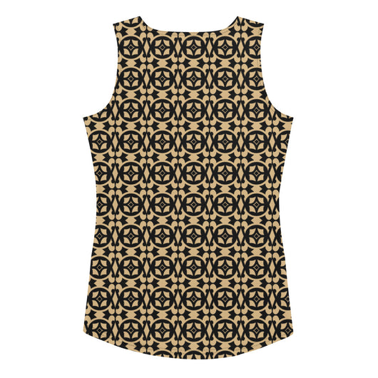 This body-hugging tank top is a must-have. Stay comfortable and stylish all summer with this Mono Gramic Print Tank Top, featuring a stunning monogram black print on a beige background.