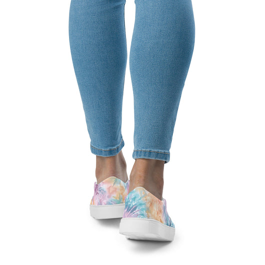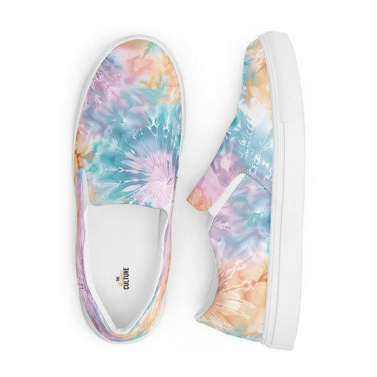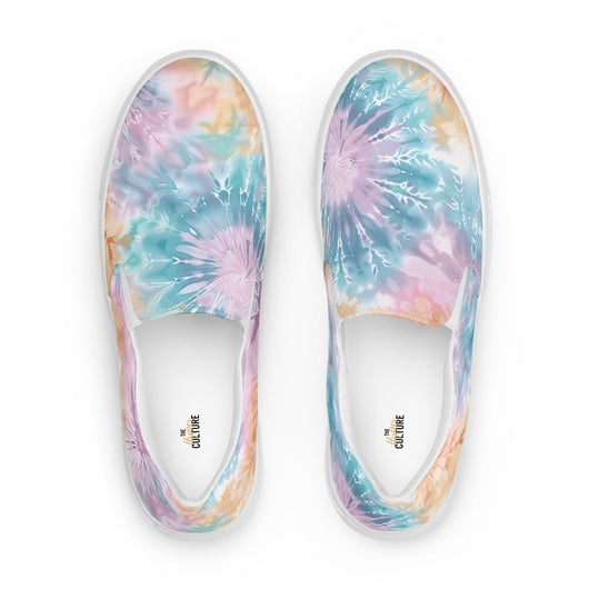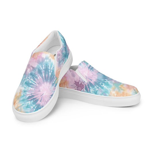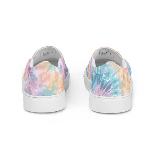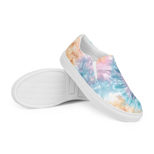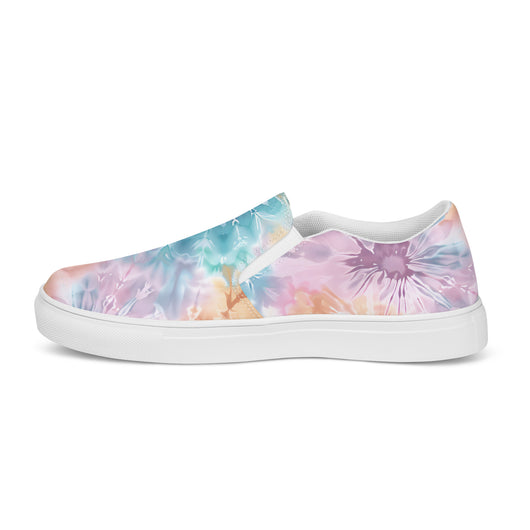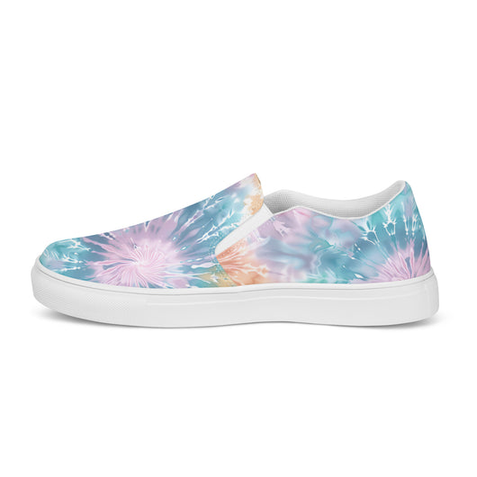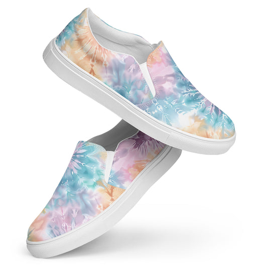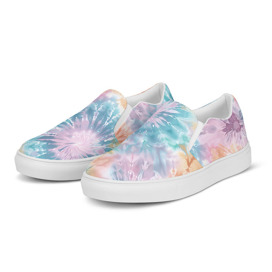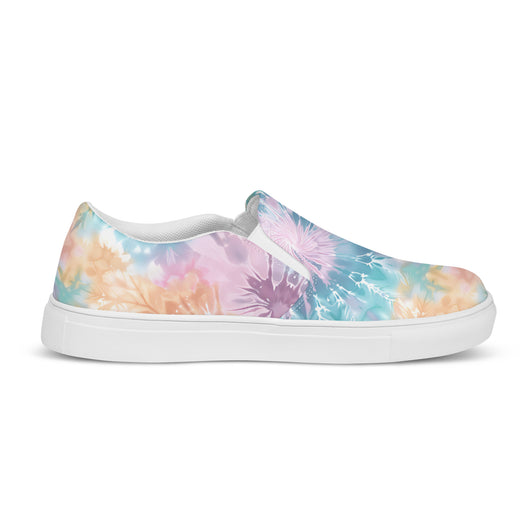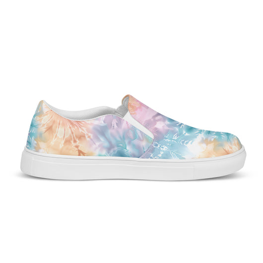 US Size 5-11.5 | Elevate your summer look with these rich purple canvas slip-ons, featuring a gorgeous print with pastel tie and dye print. Stylish and comfy, they offer soft, removable insoles and durable rubber outsoles for great traction. Slip them on and step out in style!
