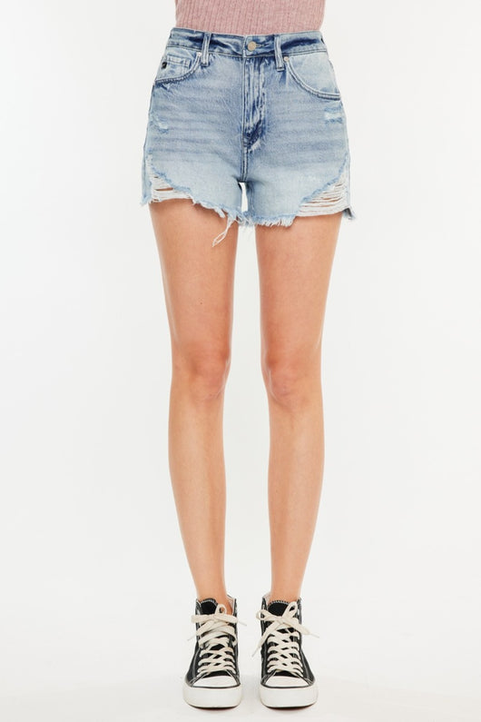 Kancan Distressed High Waist Denim Shorts with Pockets