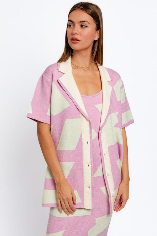Le Lis Abstract Contrast Short Sleeve Collared Cardigan