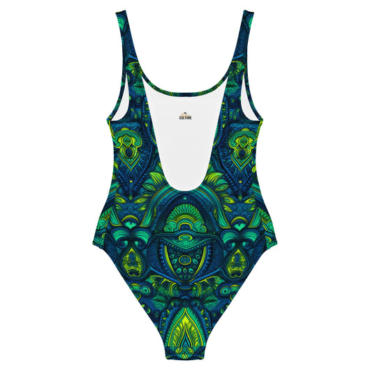 This stunning one-piece swimsuit, featuring a gorgeous green and blue damask pattern, is perfect for all figures and will enhance your best features. Enjoy the smooth fabric and flattering design, ideal for showing off by the sea or pool. Discover your new favorite blue swimwear and make a splash this summer!