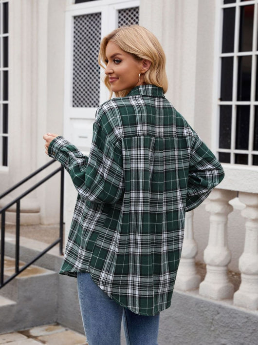 Mandy Pocketed Plaid Collared Neck Long Sleeve Shirt