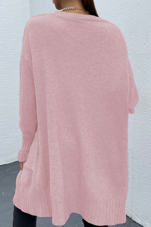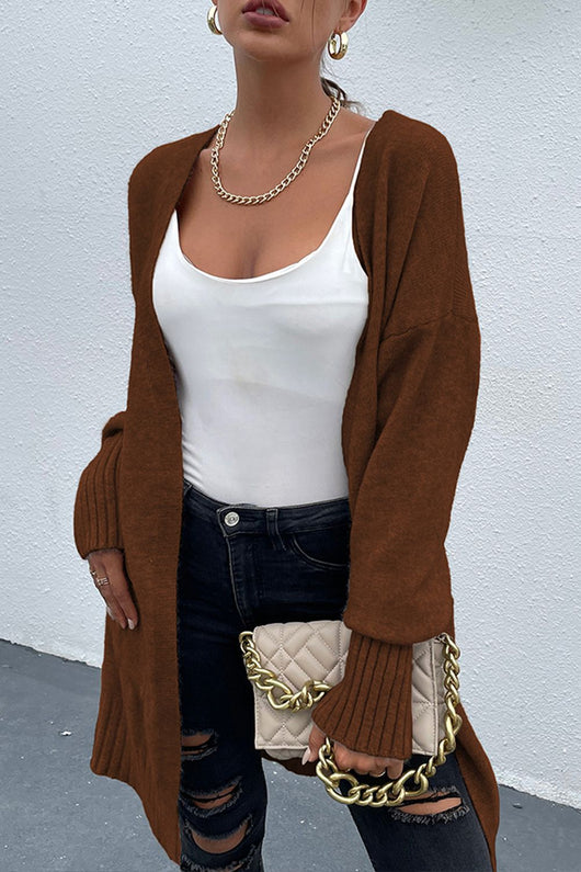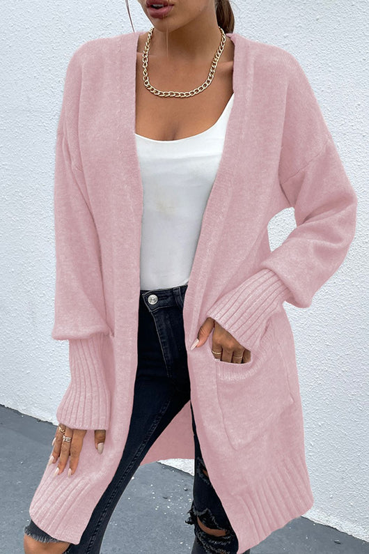 Shiny Open Front Dropped Shoulder Pocketed Cardigan