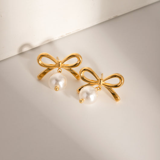 - Material: Synthetic pearl, 18K gold-plated, Stainless steel