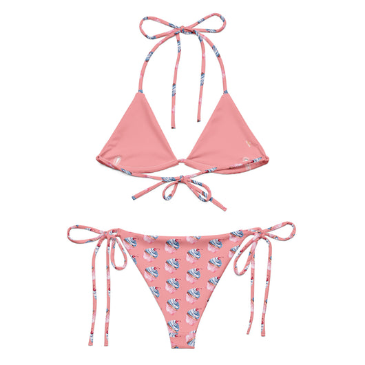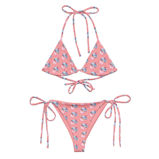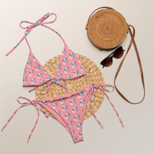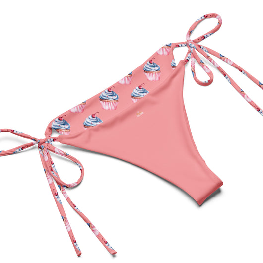 Get ready to make a splash this summer while staying both comfortable and fashionable with our String Bikini set. This cute pink bikini, adorned with delicious cupcake prints, is crafted from ultra-soft recycled polyester and designed with double-layering for the perfect blend of comfort and sustainability. With a UPF 50+ rating, it provides excellent sun protection, allowing you to soak up the sun worry-free. Style the straps according to your preference and prepare to dive into the water with confidence and style!
