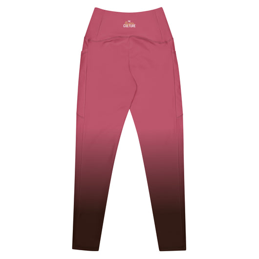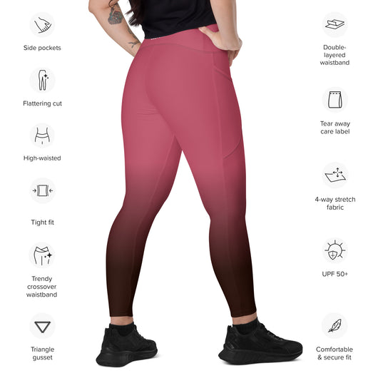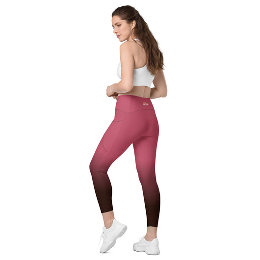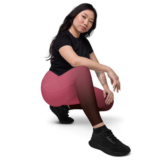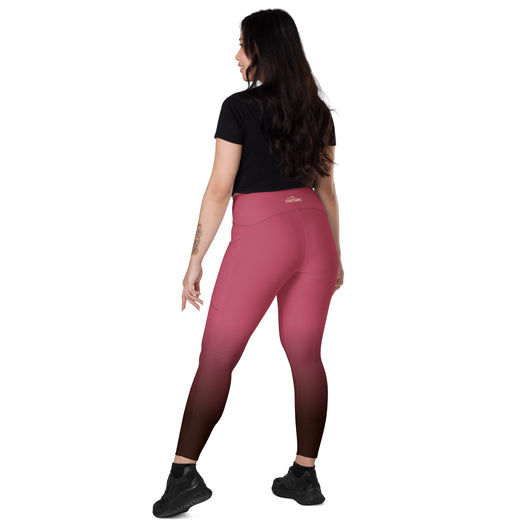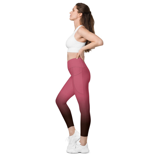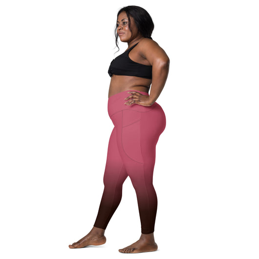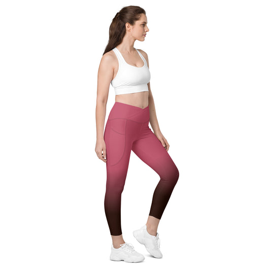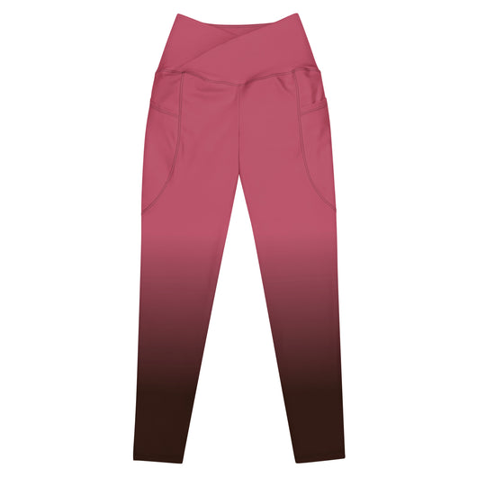 2XS - 6XL | Treat yourself to trendy and flattering crossover leggings with pockets. Enjoy exceptional comfort during your training and keep your valuables close with practical side pockets. Featuring a gorgeous onion pink to coffee brown gradient.
