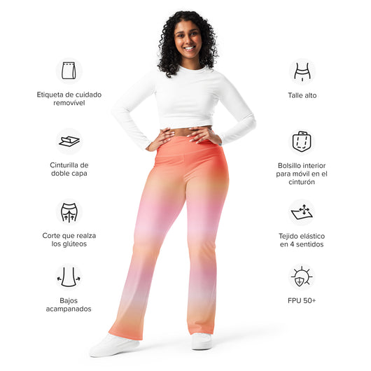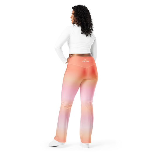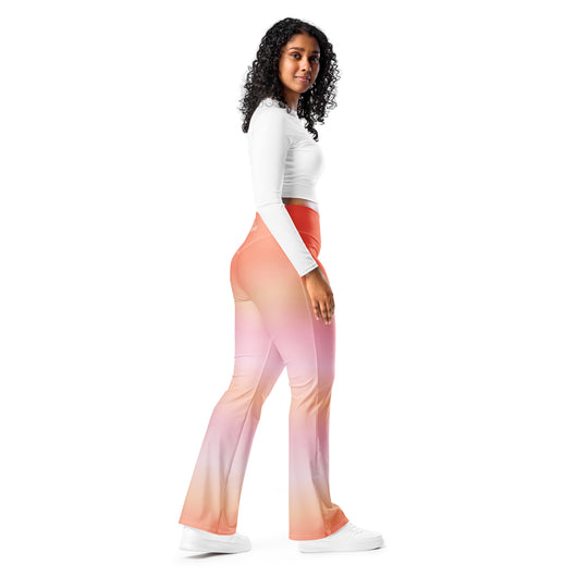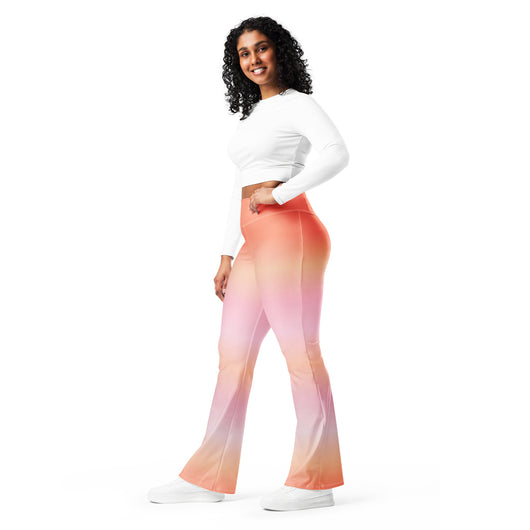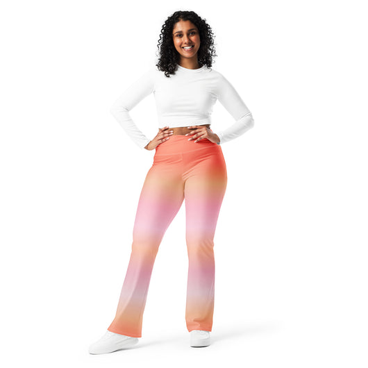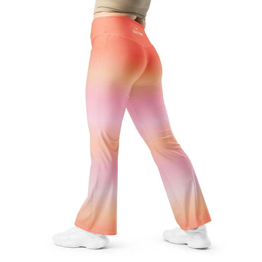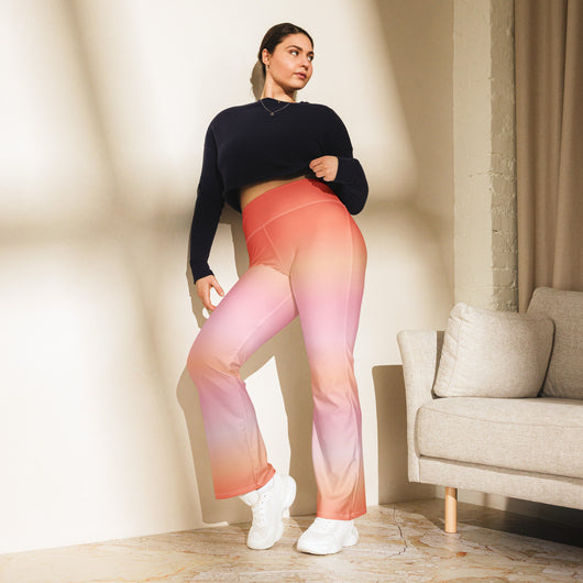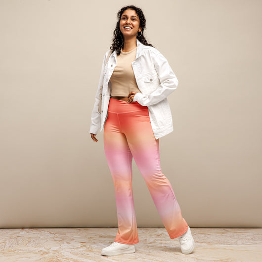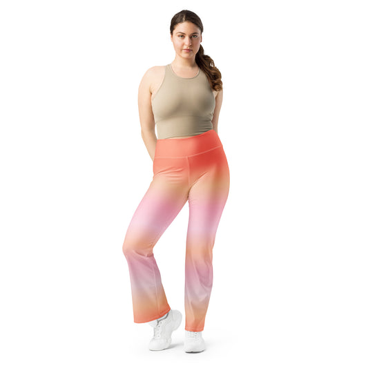 2XS - 6XL | Elevate your activewear with our flare leggings featuring a high waist and butt-lifting cut. Adorned with a gorgeous orange and pink gradients these trendy yoga leggings combine style and comfort with their flared leg bottoms. Perfect for the gym or casual wear, they’re a must-have addition to any wardrobe.