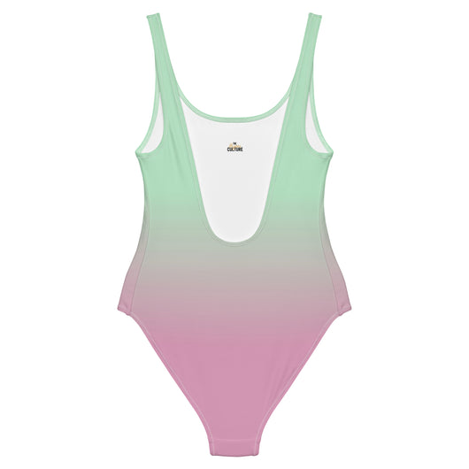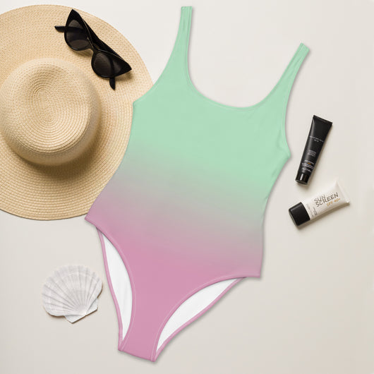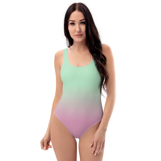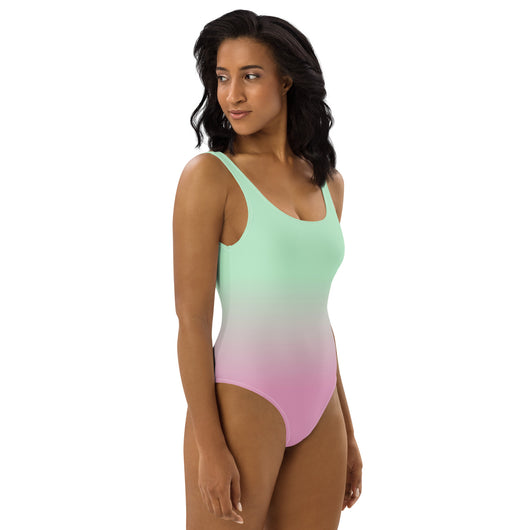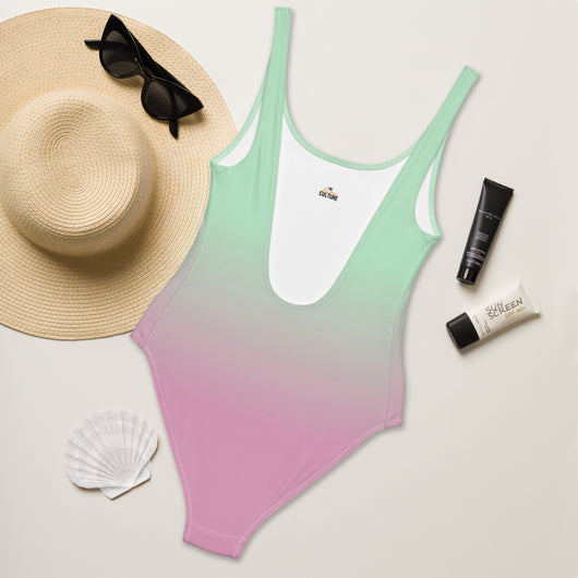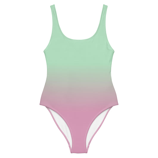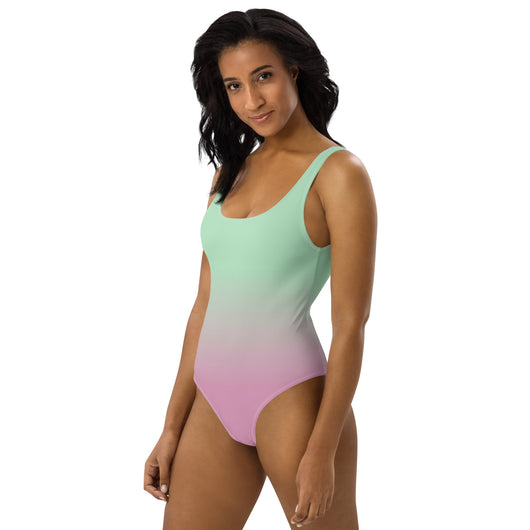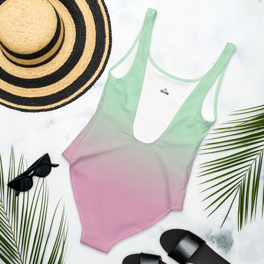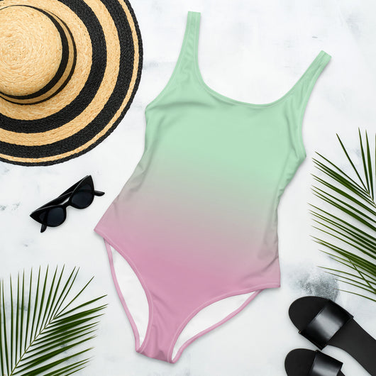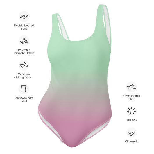 Looking for a swimsuit that flatters every body shape? Our one-piece swimsuit with a gorgeous pink to apple green gradient, is designed to highlight your best features. Made from smooth fabric, it's perfect for the beach or pool. Available in XS - 3XL sizes.