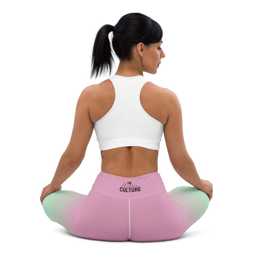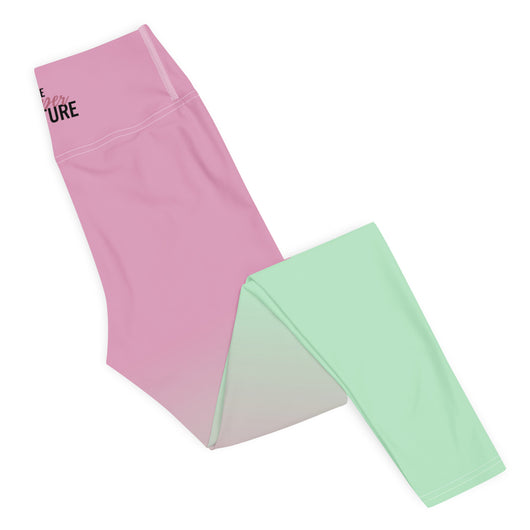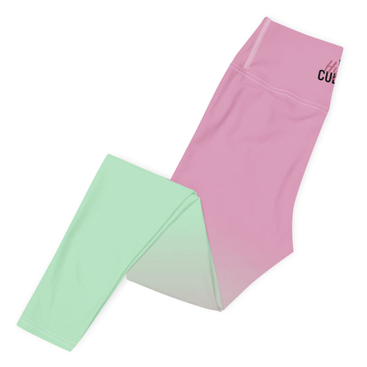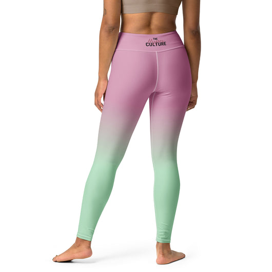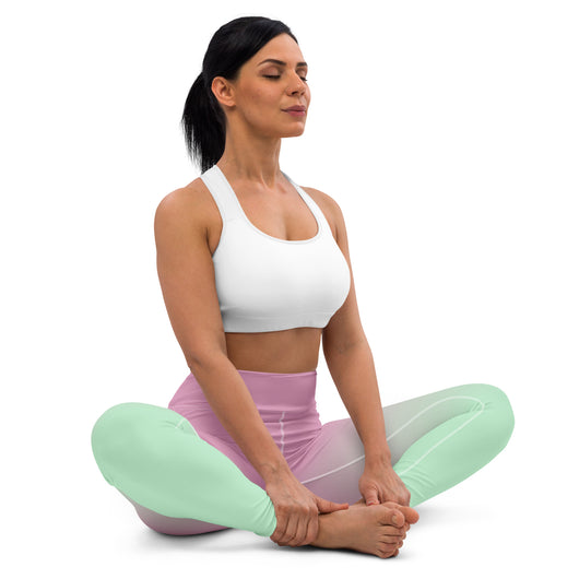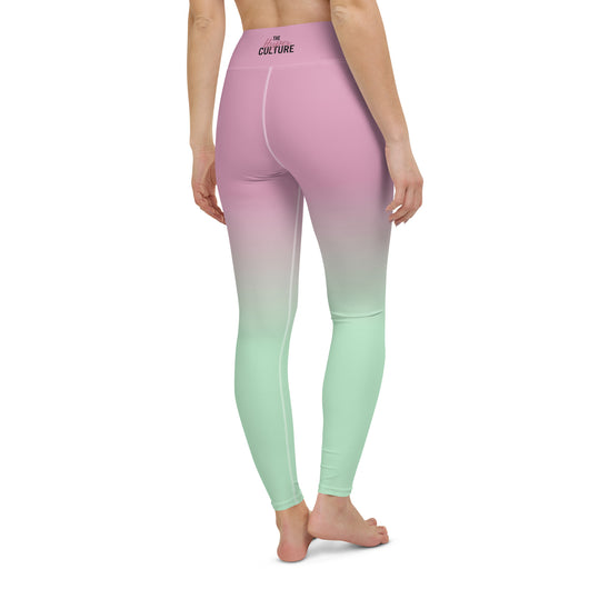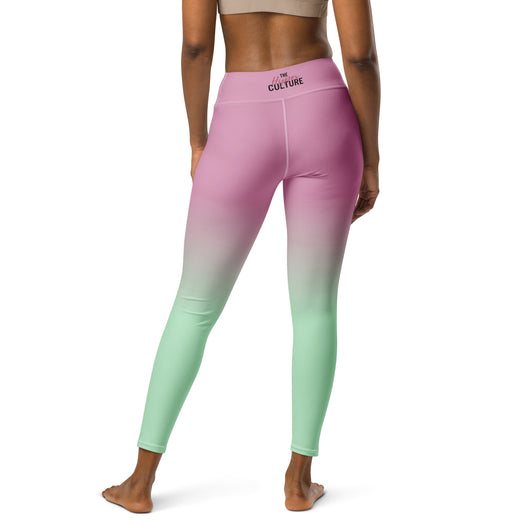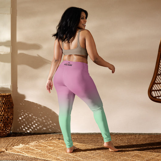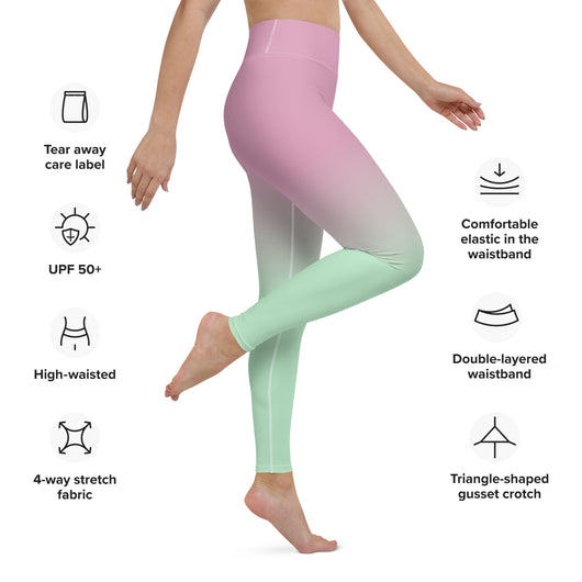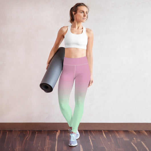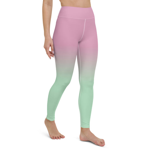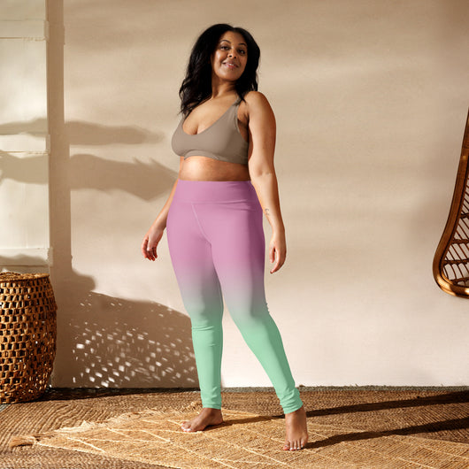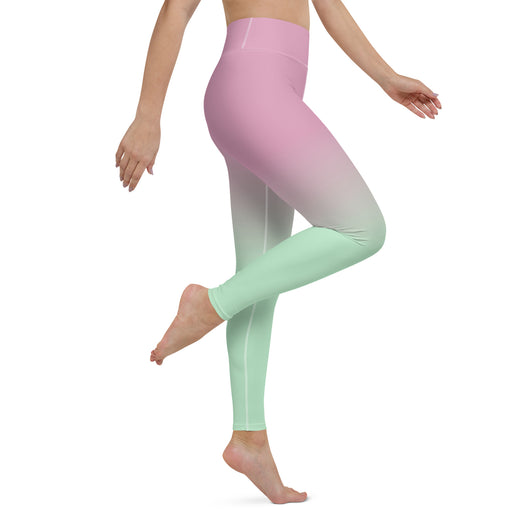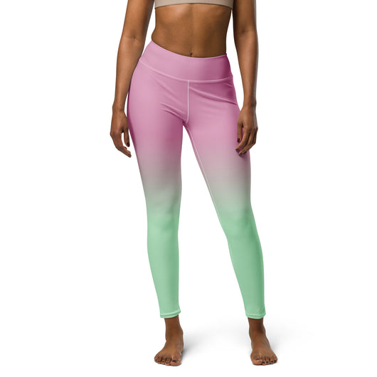 XS - XL | Discover unmatched comfort and flexibility with these yoga leggings. Adorned with a gorgeous pink to apple green gradient, they offer a soft, stretchy fit perfect for any yoga session. Elevate your practice with these stylish leggings.