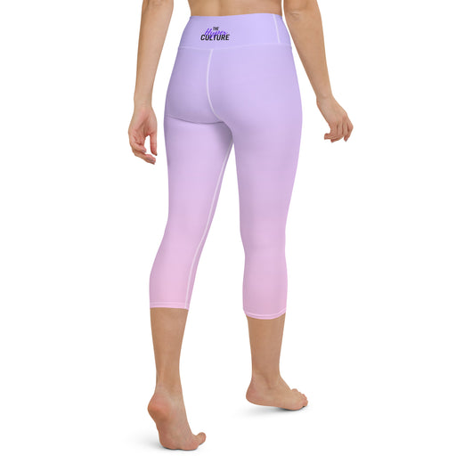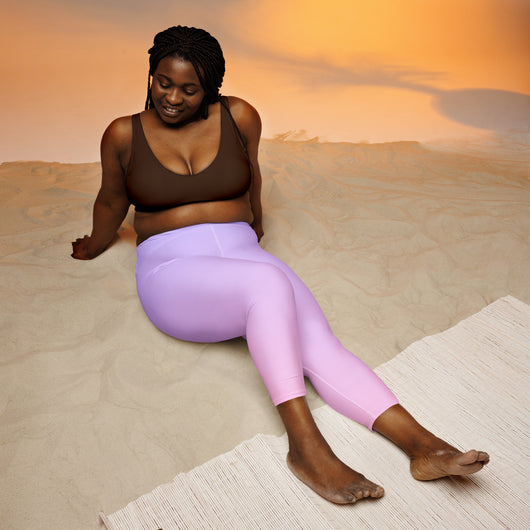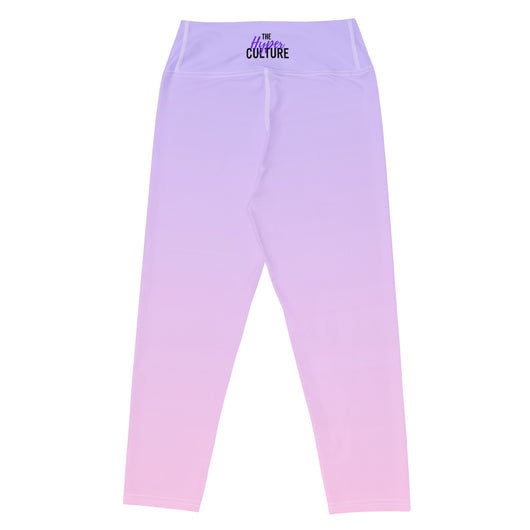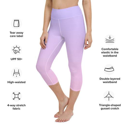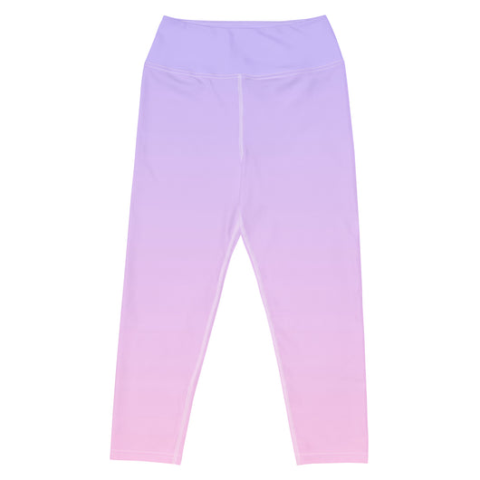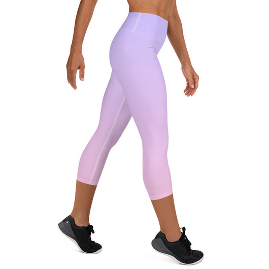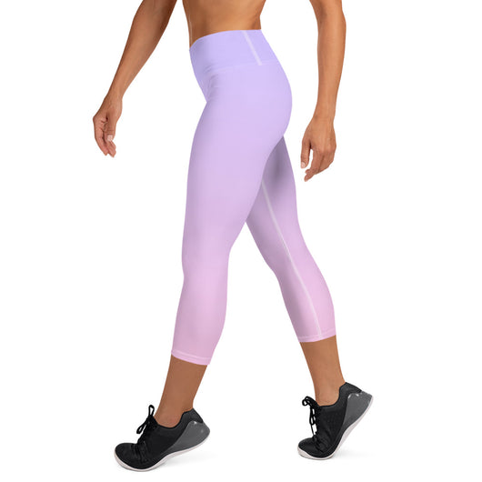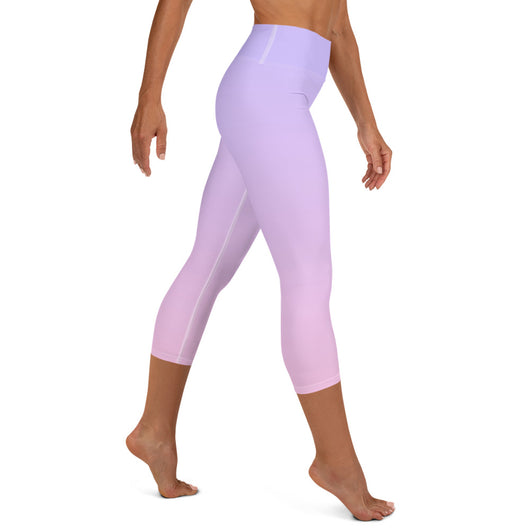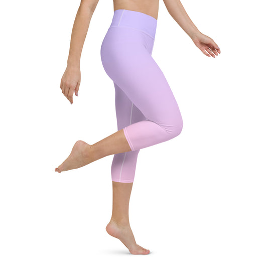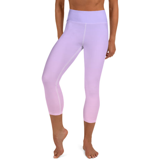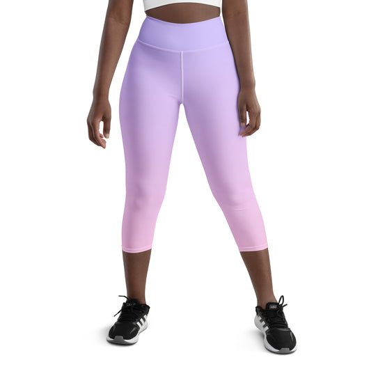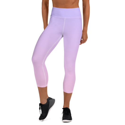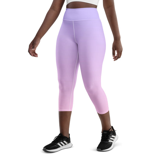 XS - XL | These yoga capri leggings rock a high elastic waistband, perfect for yoga, gym workouts, or chill evenings at home. With a gorgeous purple to pink gradient, they blend comfort with trendy style effortlessly.