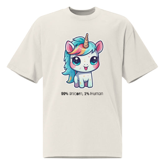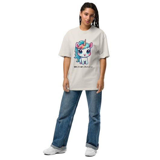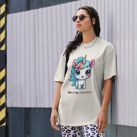 Embrace the magic with our Oversize T-shirt, designed for those who love to layer and create unique outfits that blend modern trends with a nostalgic touch. Featuring a cute unicorn graphic, this shirt is perfect for all of us who are 99% unicorn and 1% human! The loose fit of our oversize tees allows you to experiment with textures and proportions, giving you the freedom to express your personality through your style.