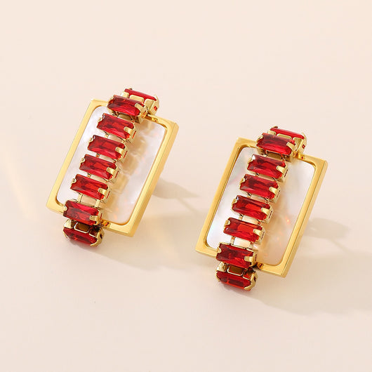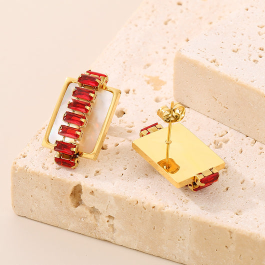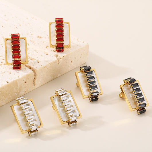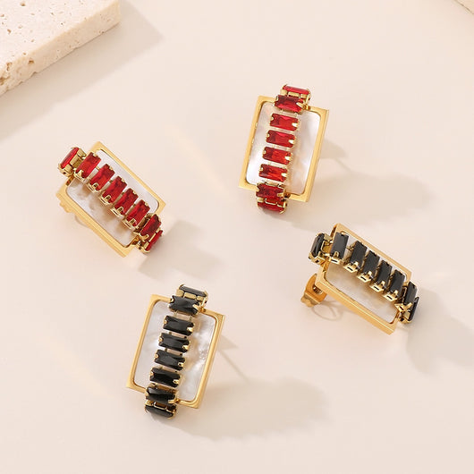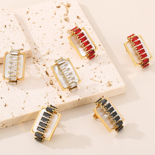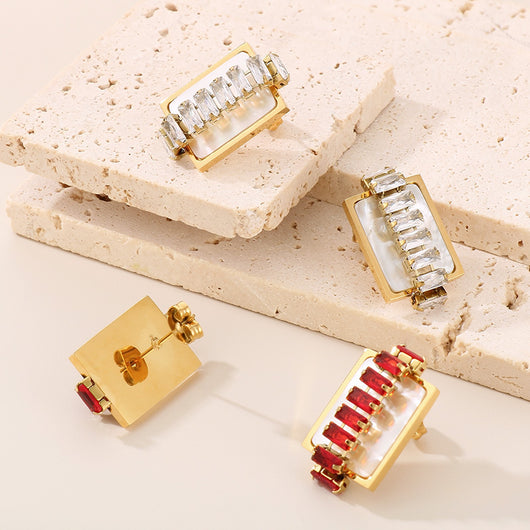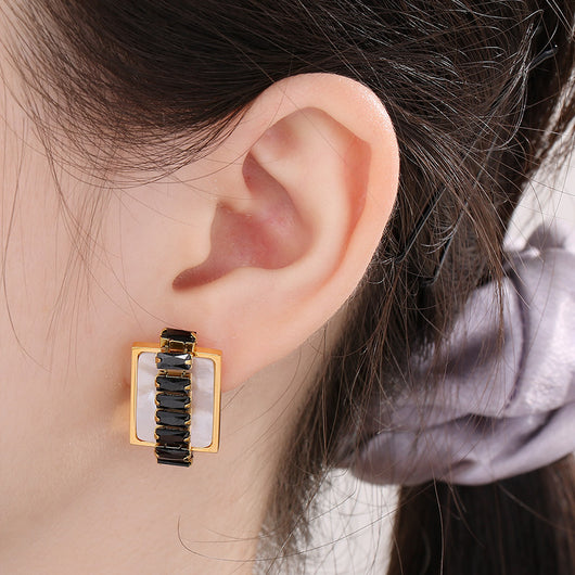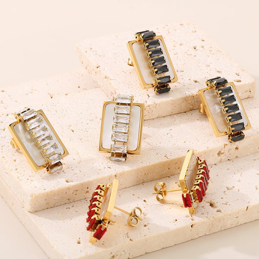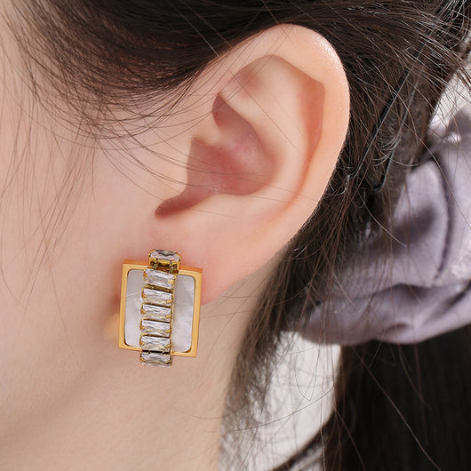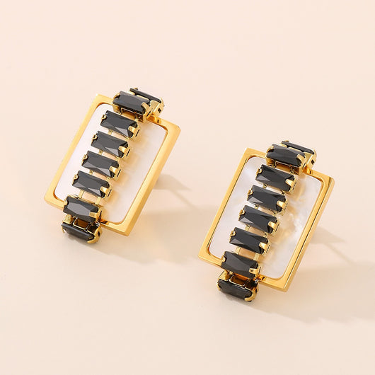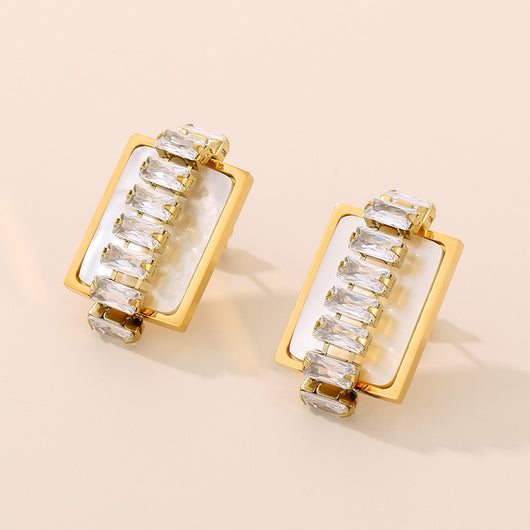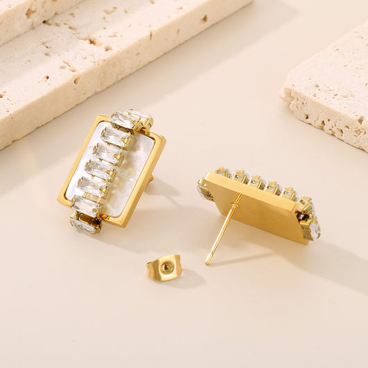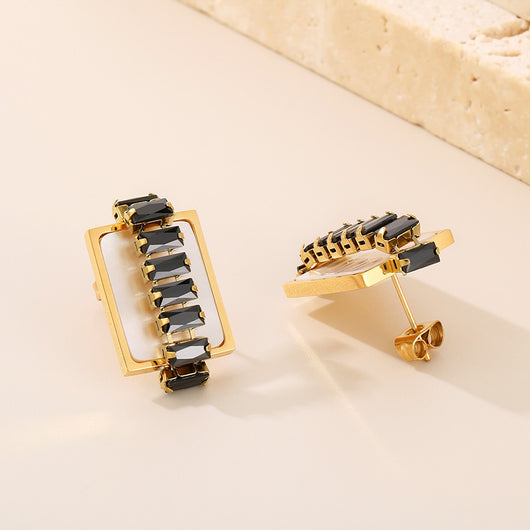 Titanium Steel Inlaid Zircon Stud Earrings