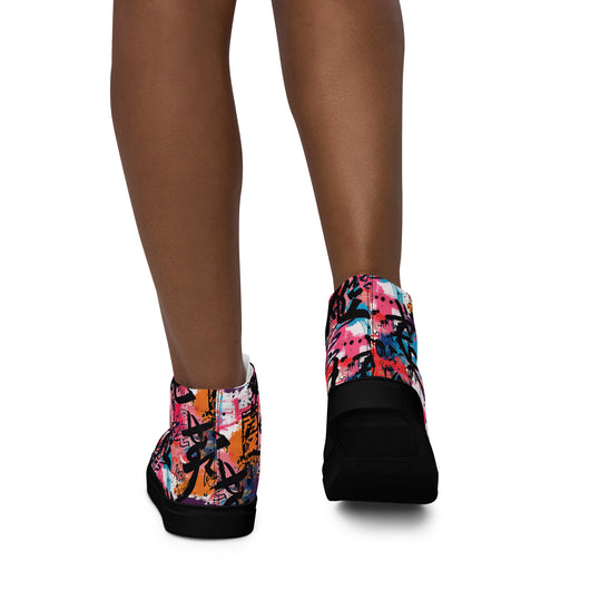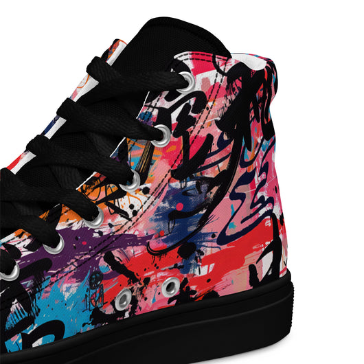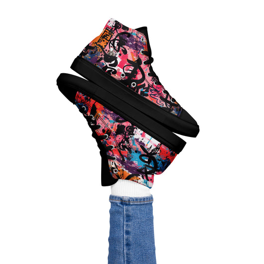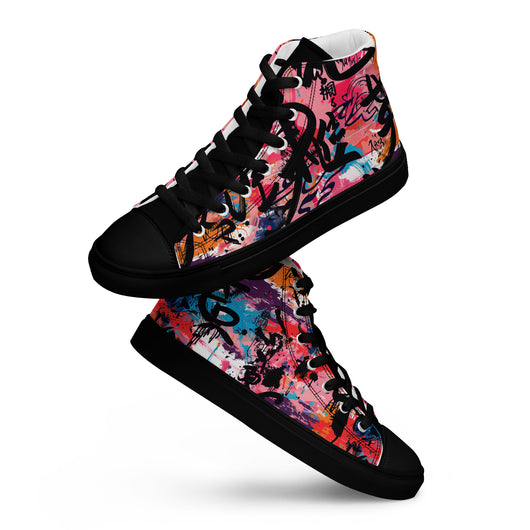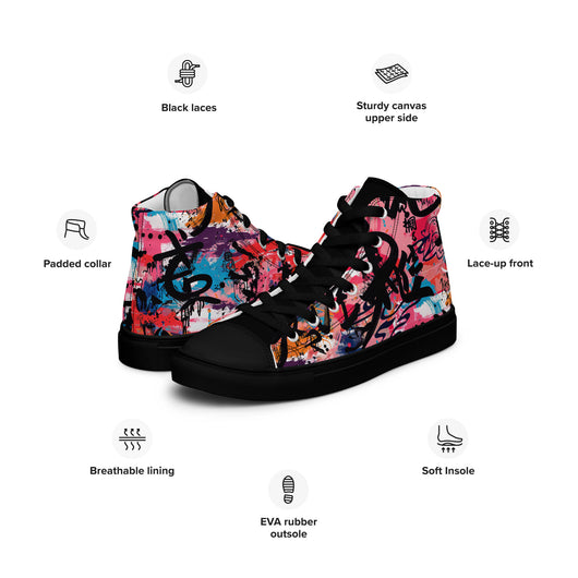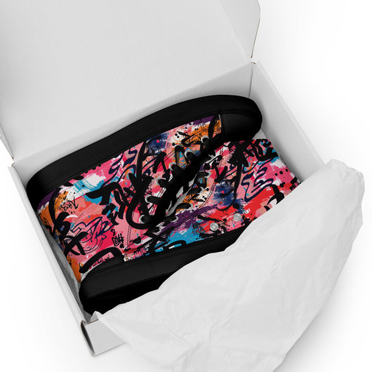Adding a pair of classic and stylish high top canvas shoes to your wardrobe would be a fantastic choice. Featuring a cool pink graffiti print to suit your urban street style!