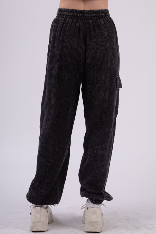 VERY J Washed Woven Crinkle Gauze Drawstring Pants