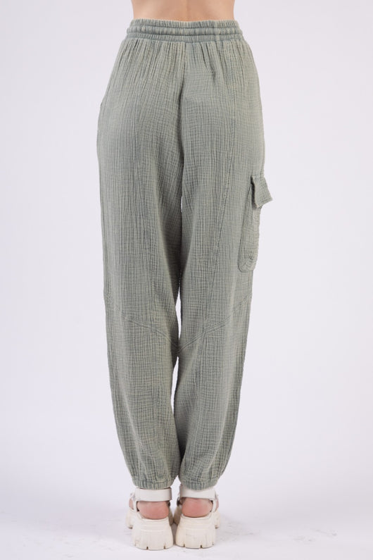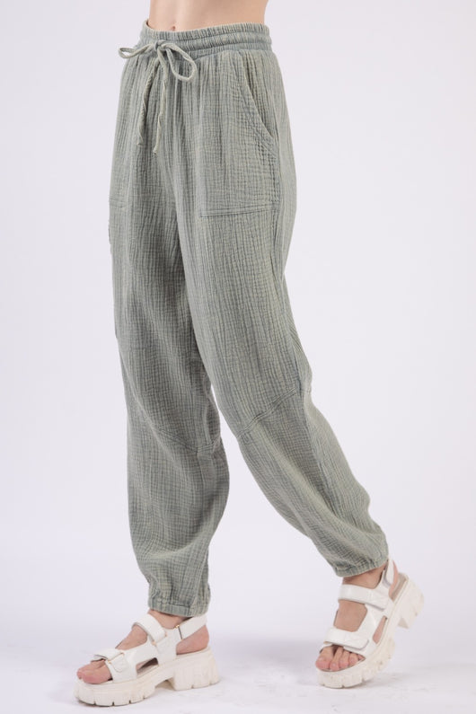 VERY J Washed Woven Crinkle Gauze Drawstring Pants