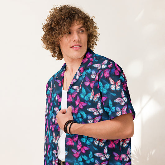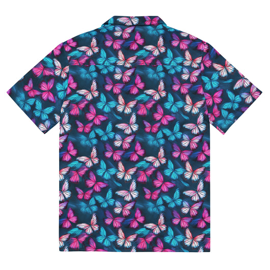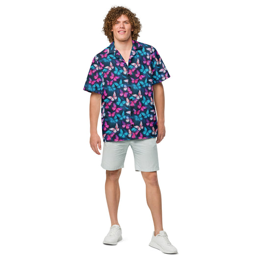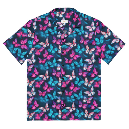 2XS - 6XL | Meet your new favorite summer shirt! Featuring beautiful pink and blue butterflies on blue background, this wild print shirt combines style and comfort. Its featherlight, moisture-wicking material keeps you cool even on the hottest days. Stay stylish all summer long!
