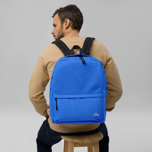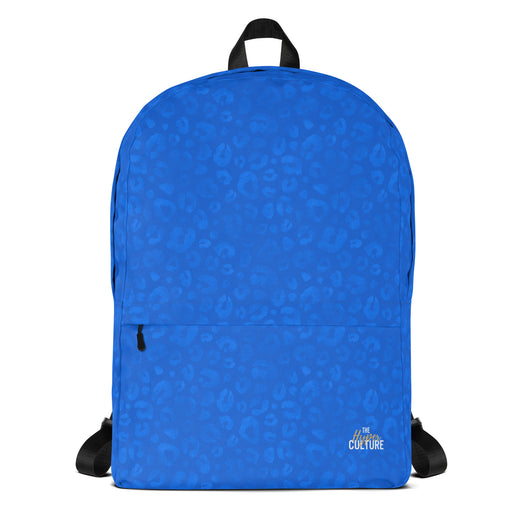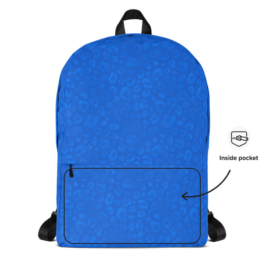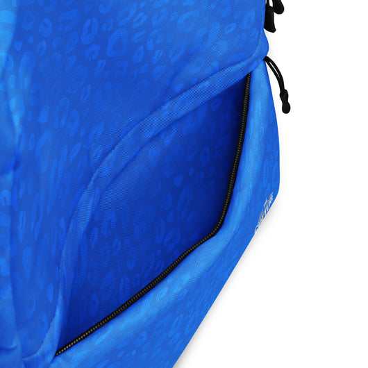 16â…ž" (42cm) x 12ÂĽ" (31cm), x 3â…ž" (10cm) | This medium-sized backpack, perfect for daily use or sports, is adorned with a gorgeous blue leopard print. Ideal for school, it has spacious pockets, fits a 15" laptop, and is water-resistant to protect belongings.