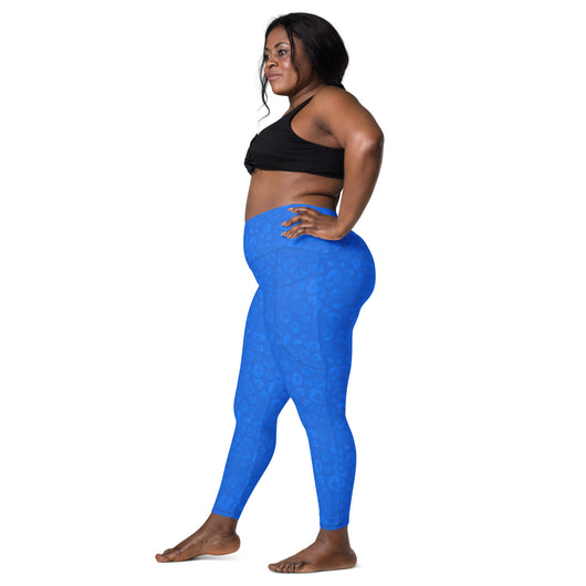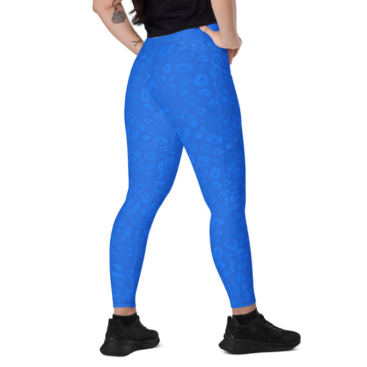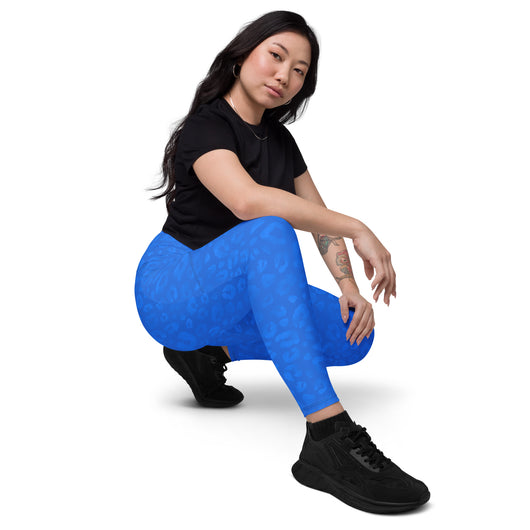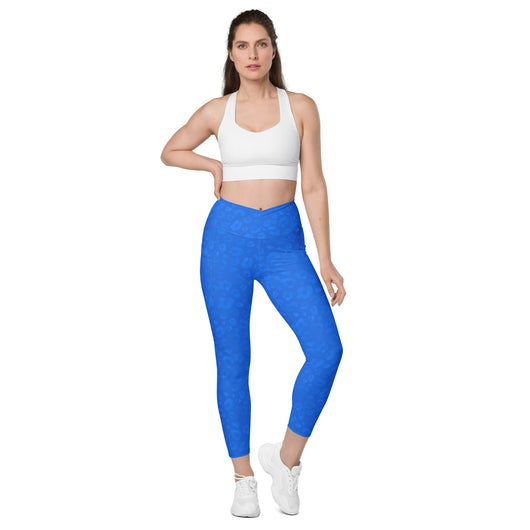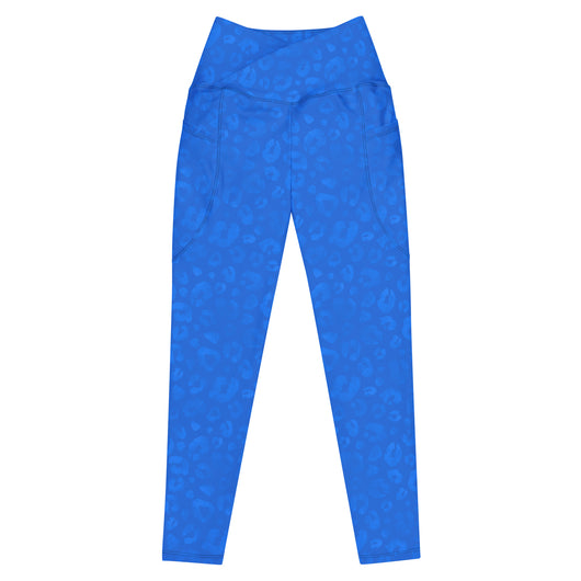 2XS - 6XL | Treat yourself to trendy and flattering crossover leggings with pockets. Enjoy exceptional comfort during your training and keep your valuables close with practical side pockets. Featuring a gorgeous blue leopard print.