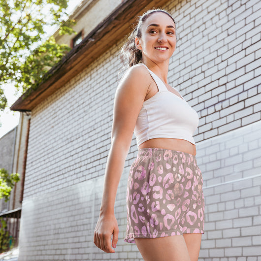 Looking for shorts that can keep up with your active lifestyle? These athletic short shorts are perfect for a run, a swim, or both. Made from versatile, comfy fabric, theyāre great for any sports event. Plus, they feature pockets and a gorgeous pink leopard print on a mauve background. Grab a pair now!