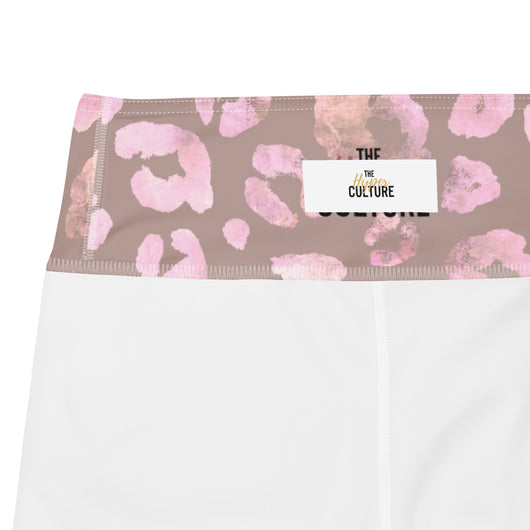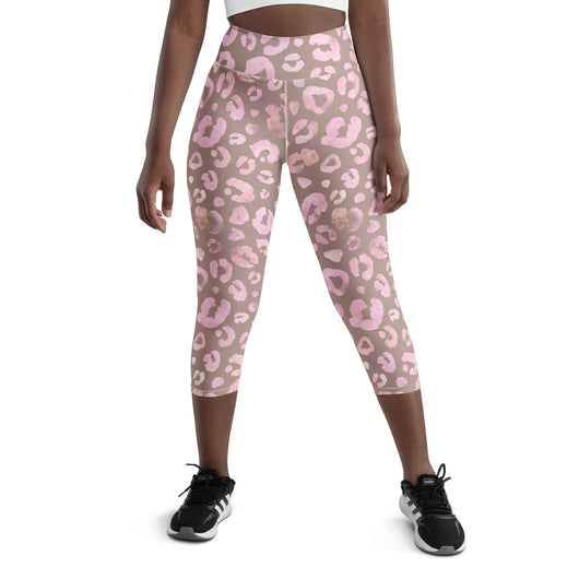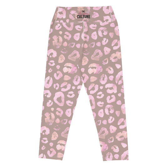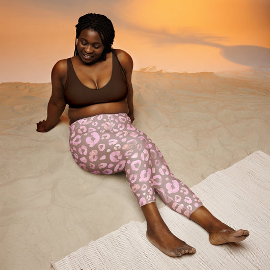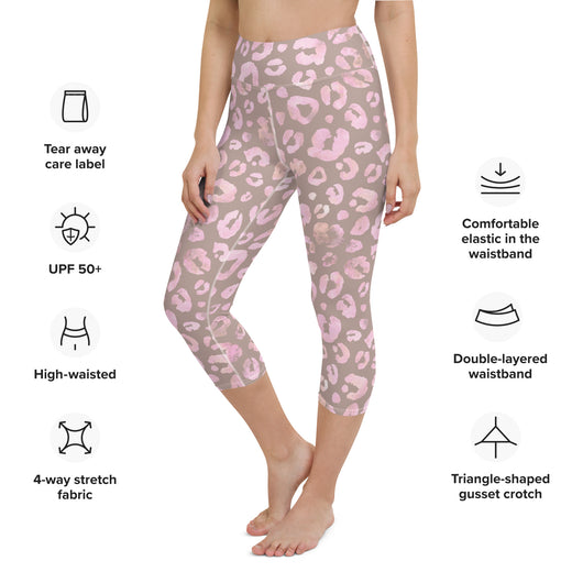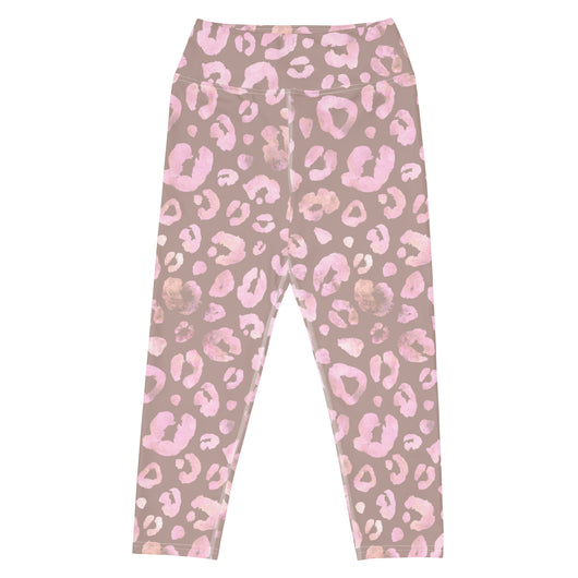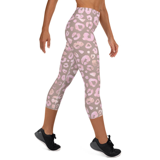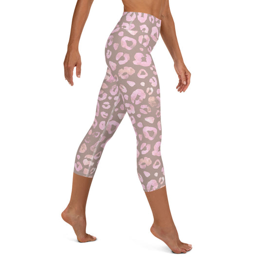 These yoga capri leggings rock a high elastic waistband, perfect for yoga, gym workouts, or chill evenings at home. With a gorgeous pink leopard print on mauve background, they blend comfort with trendy style effortlessly.