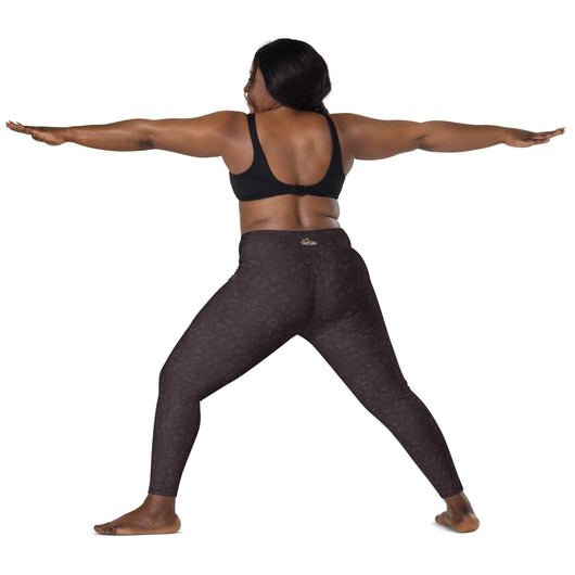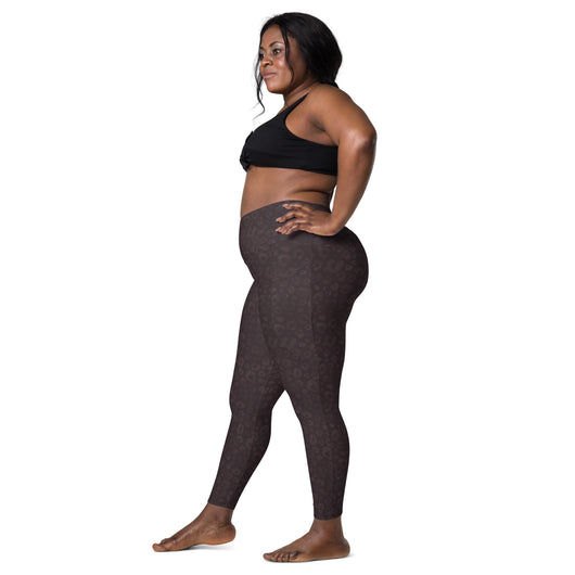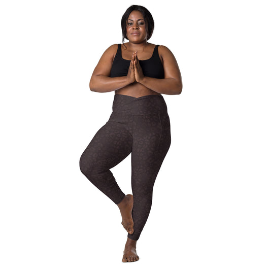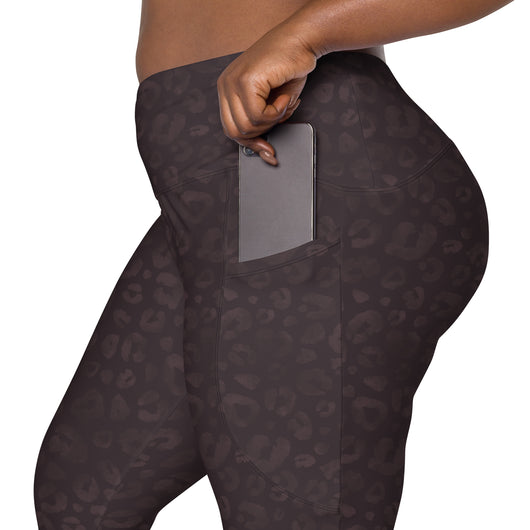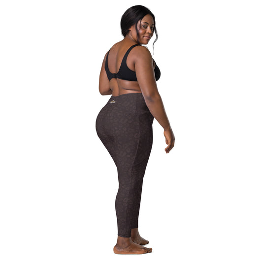 2XS - 6XL | Treat yourself to trendy and flattering crossover leggings with pockets. Enjoy exceptional comfort during your training and keep your valuables close with practical side pockets. Featuring a gorgeous coffee leopard print.