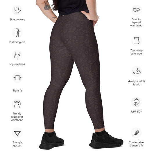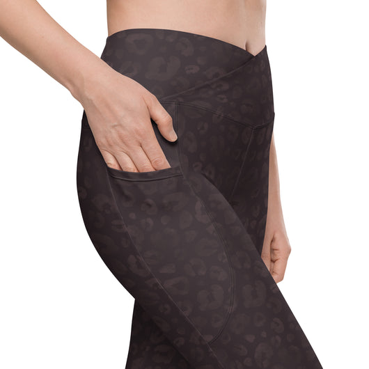 [Wild Side] Mocha Spots Crossover Leggings with Pockets