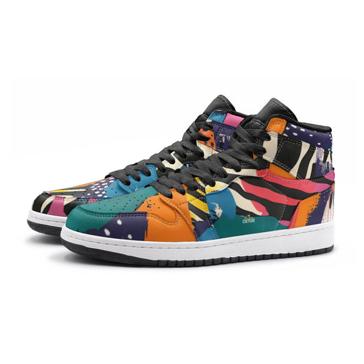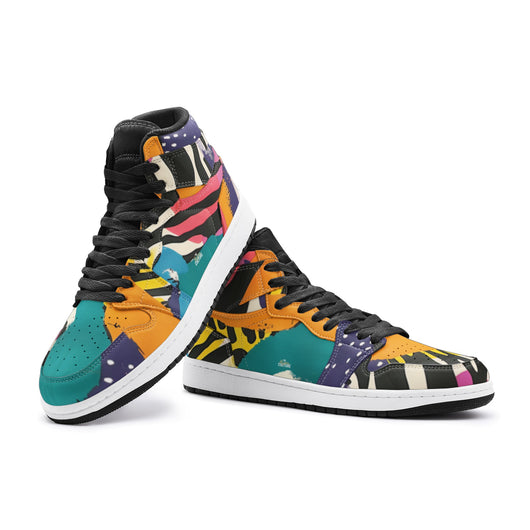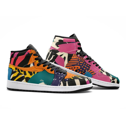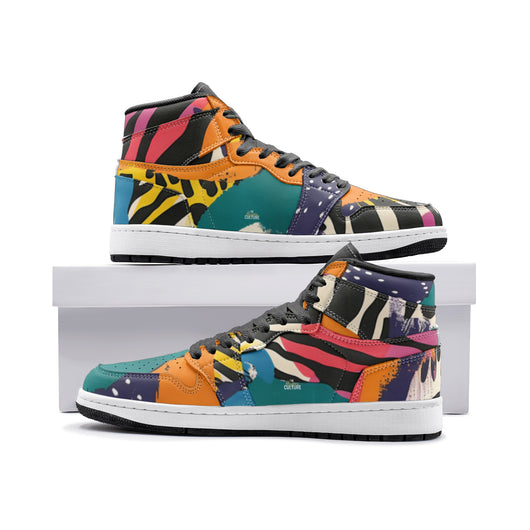 Elevate your streetwear with these sneakers, featuring an abstract animal print pattern with a burst of colors. The rubber sole offers top-notch traction, and the perforated toe box keeps your footwear breathable. With comfort, impact protection, and custom basketball traction, these kicks are ready for any surface.